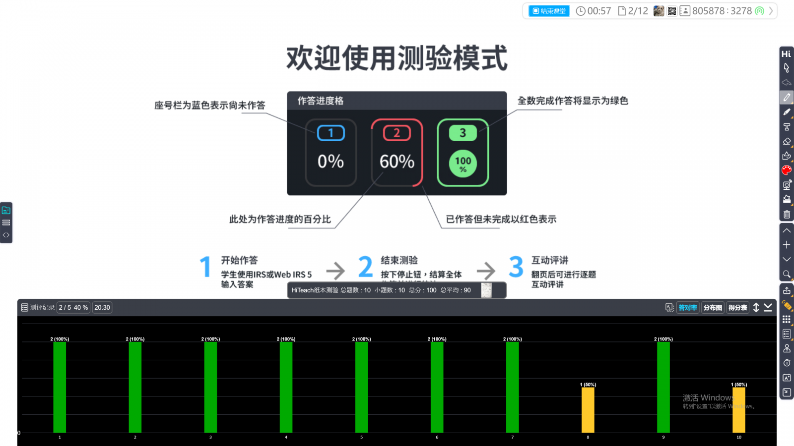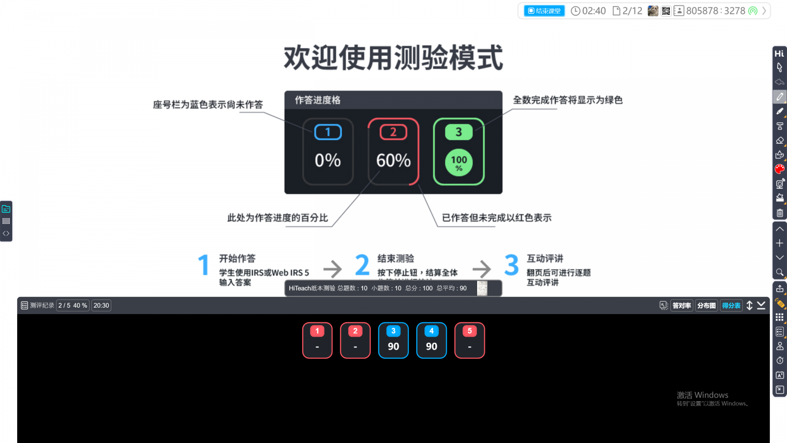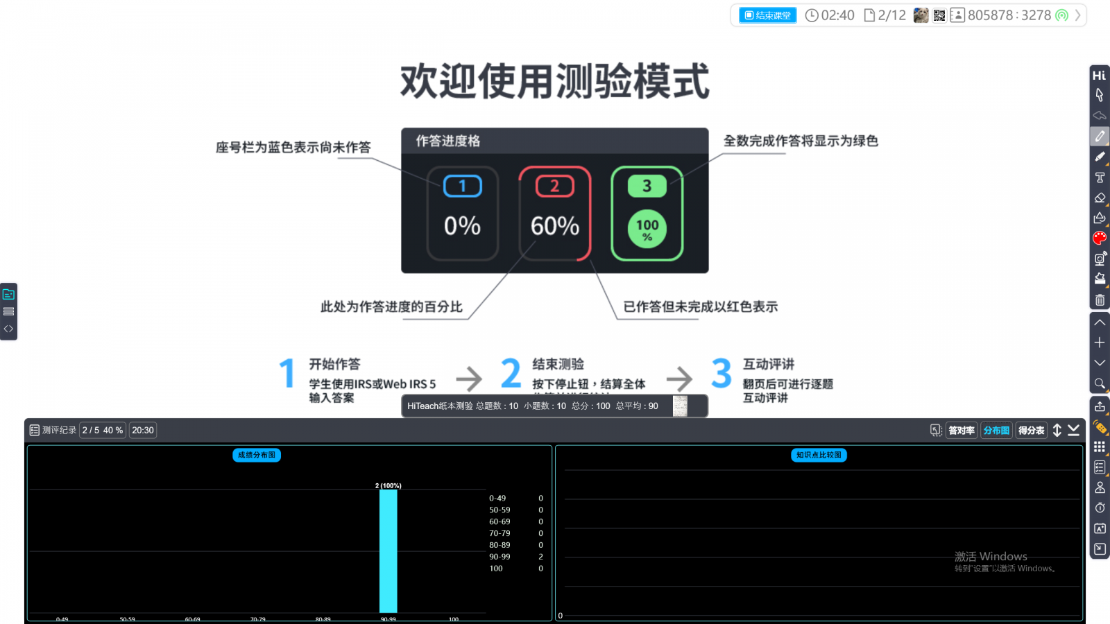 學生可開始使用Web IRS輸入答案,HiTeach顯示學生答題進度