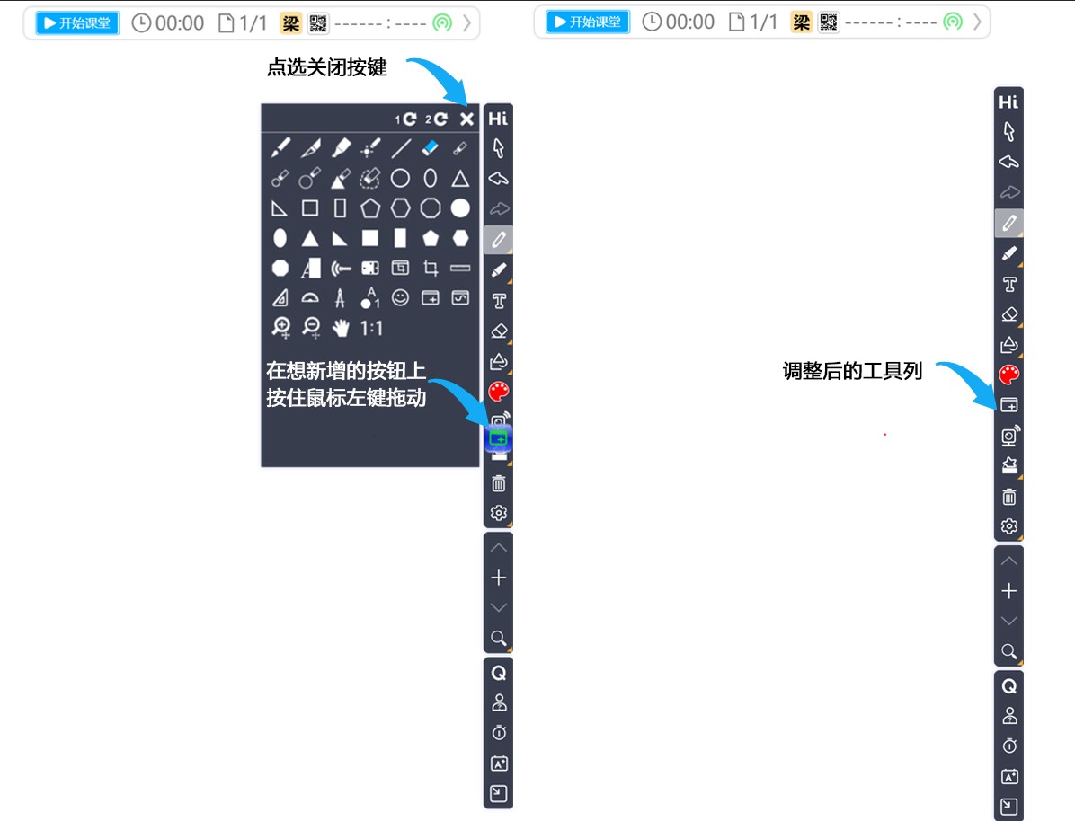 因?yàn)?/span>HiTeach的使用者非常多元,有老師覺得工具按鈕太多、有的覺得常用的工具希望可以移出來、有的則希望可以直接少一點(diǎn)。這次,盡量讓各種需求的老師可以自己選擇與定義,并且不管在哪臺(tái)計(jì)算機(jī)使用,只要登入帳號(hào)使用HiTeach,就可以配合自己習(xí)慣使用的工具列。
