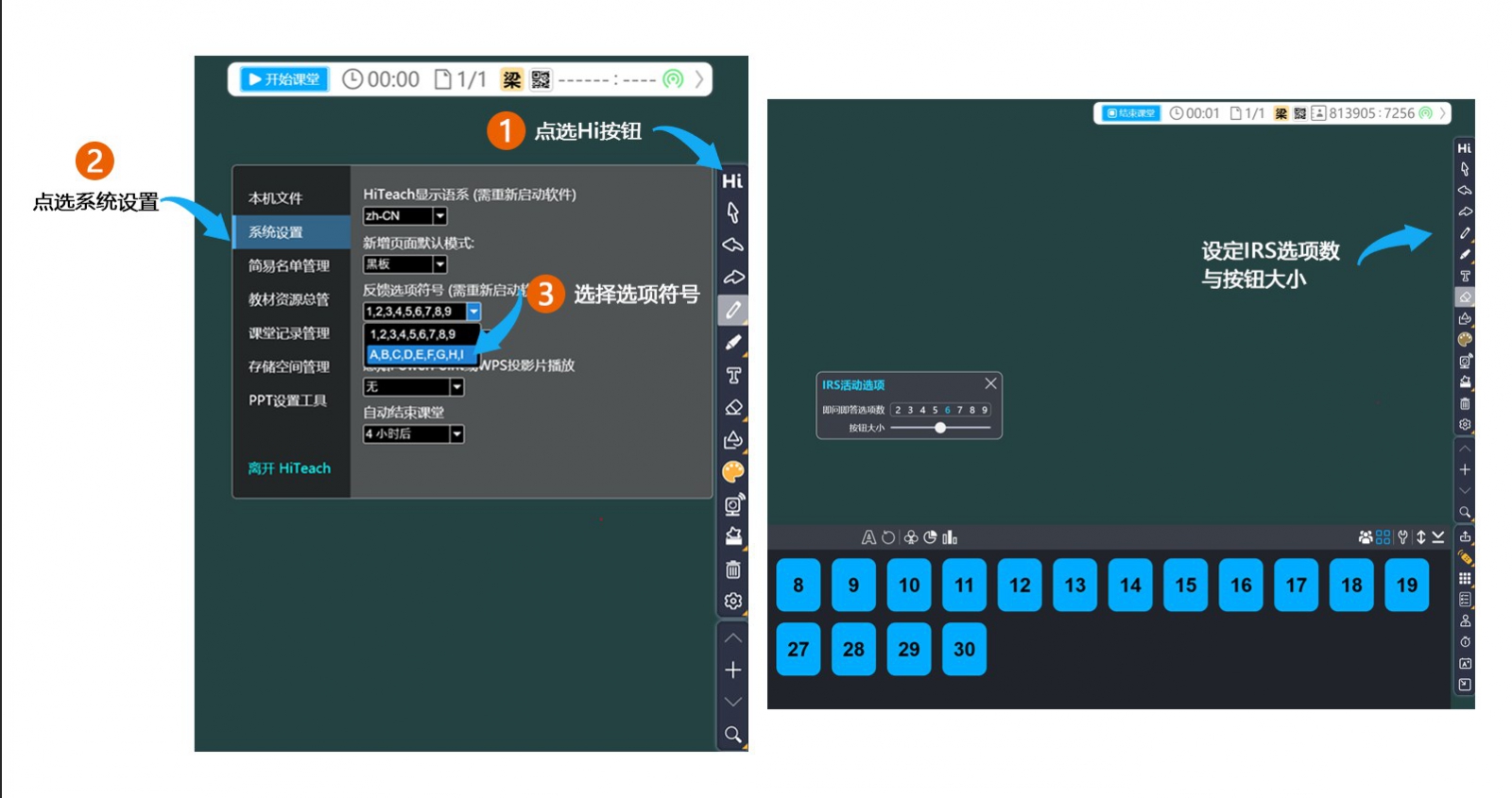 學(xué)生IRS反饋時(shí)的選項(xiàng)以數(shù)字或英文字母呈現(xiàn)、選項(xiàng)數(shù)、按鈕大小等都會(huì)記憶起來