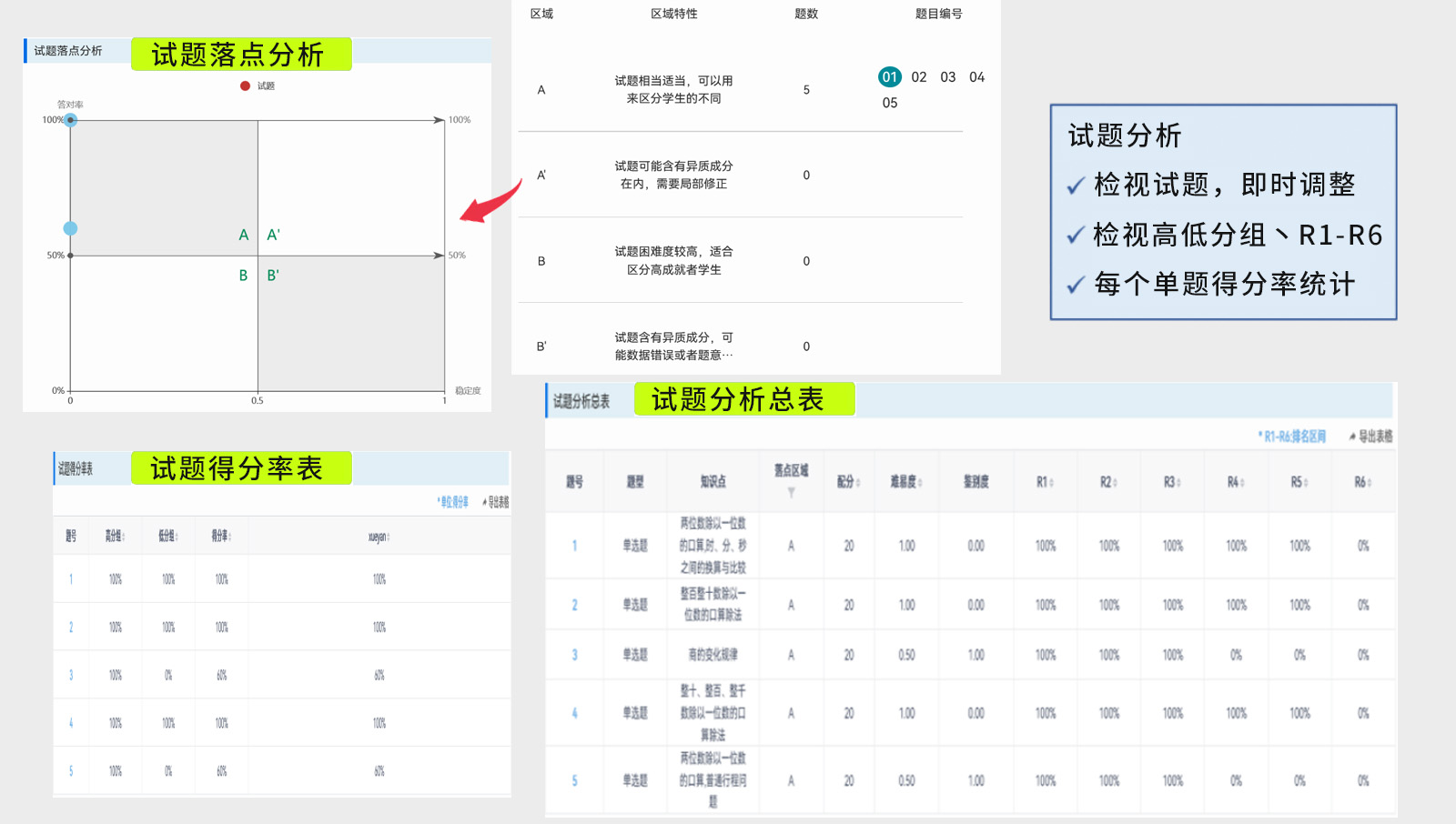 試題分析-試題落點/各分組得分率/難易度與鑒別度