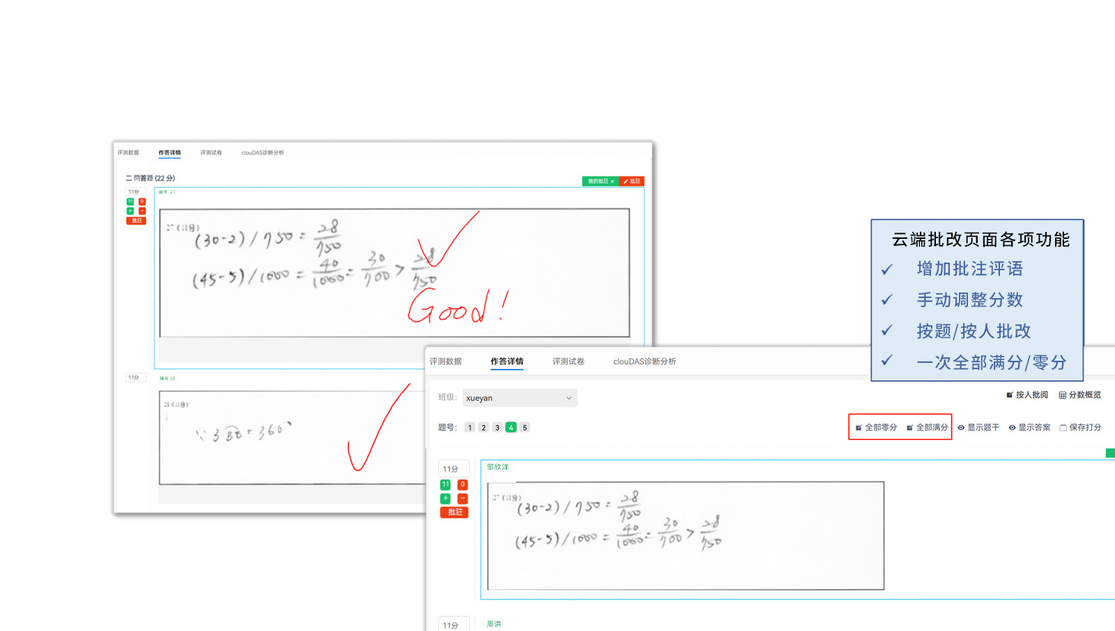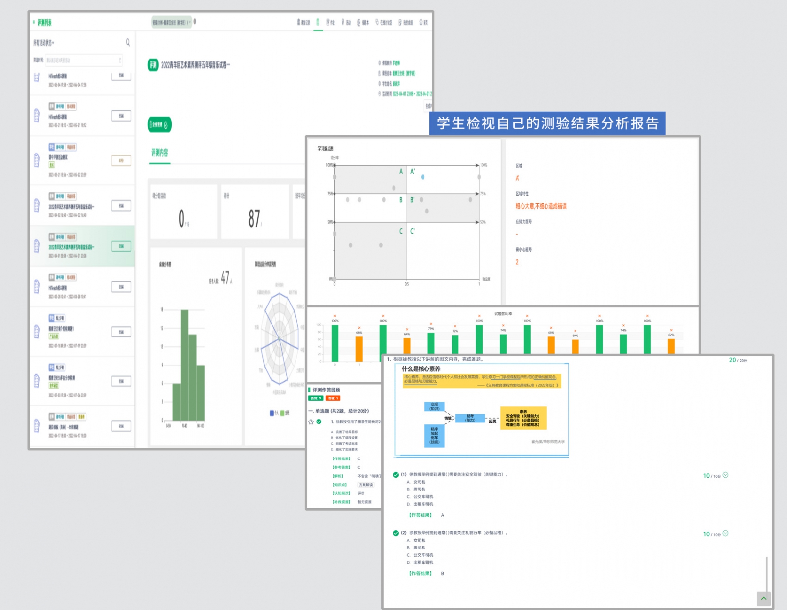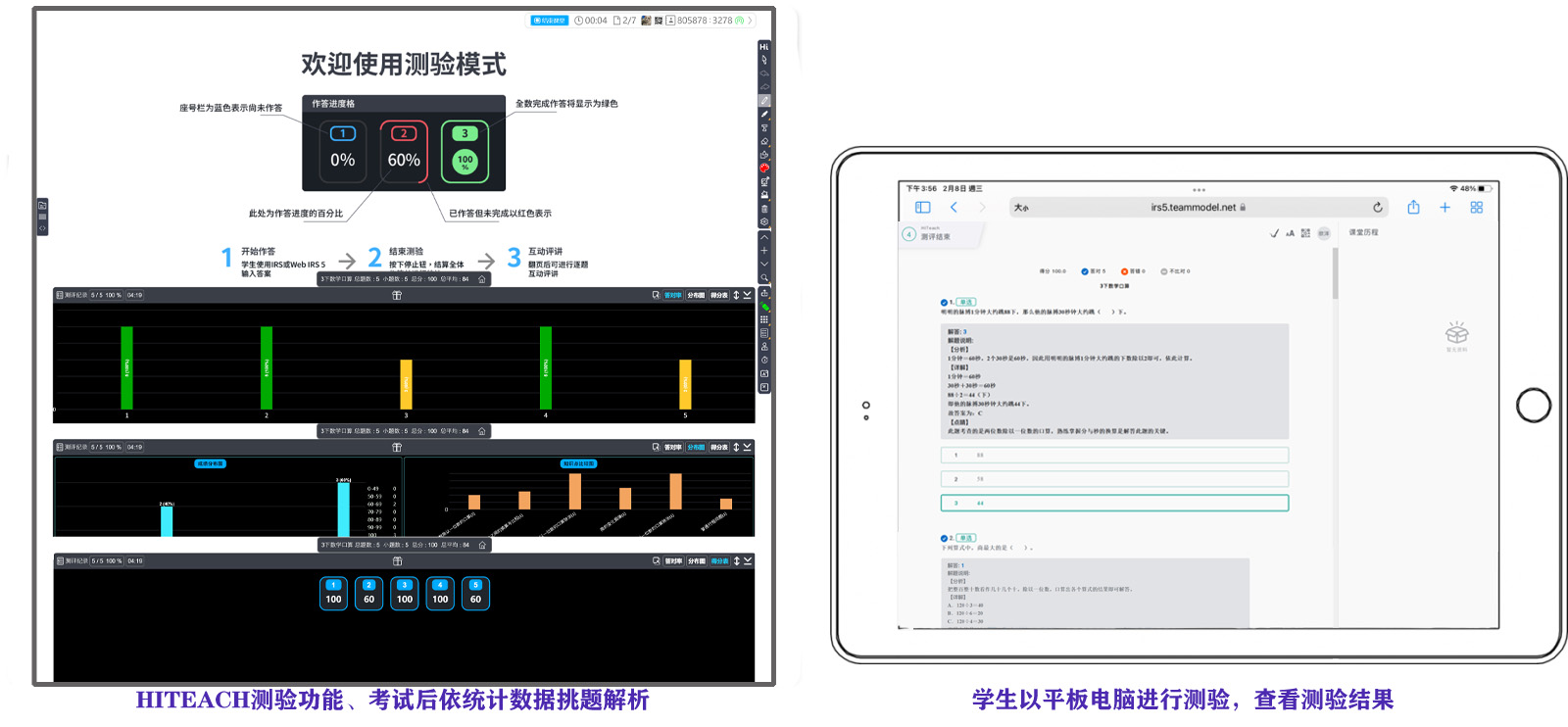 老師馬上知道檢討考卷的重點!而學(xué)生端則能馬上看到個人結(jié)果及解析。