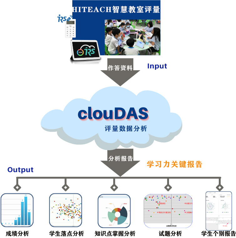 由于生生用平板或IRS反饋器的智慧教室環(huán)境愈來越普及,ADAS運算引擎也被直接應(yīng)用到HiTeach的測驗功能中,即日起推出HiTeach可附加增購的clouDAS云端診斷分析服務(wù)(cloud Diagnostic Analysis Service)模塊(簡稱clouDAS診斷分析模塊),提供學(xué)習(xí)診斷分析的應(yīng)用功能。