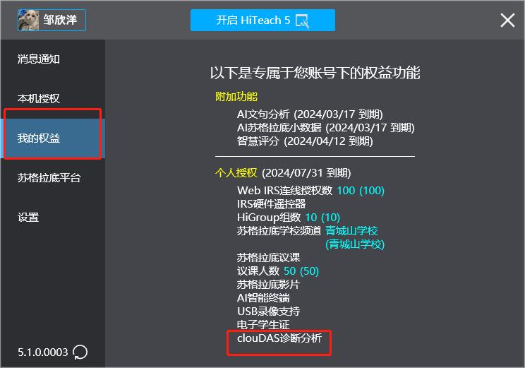 clouDAS診斷分析模塊的授權(quán)是跟著HiTeach 5授權(quán)的選購項目,若已經(jīng)有HiTeach 5專業(yè)版的授權(quán),則可增購clouDAS診斷分析模塊授權(quán)。因此,賬號授權(quán)。