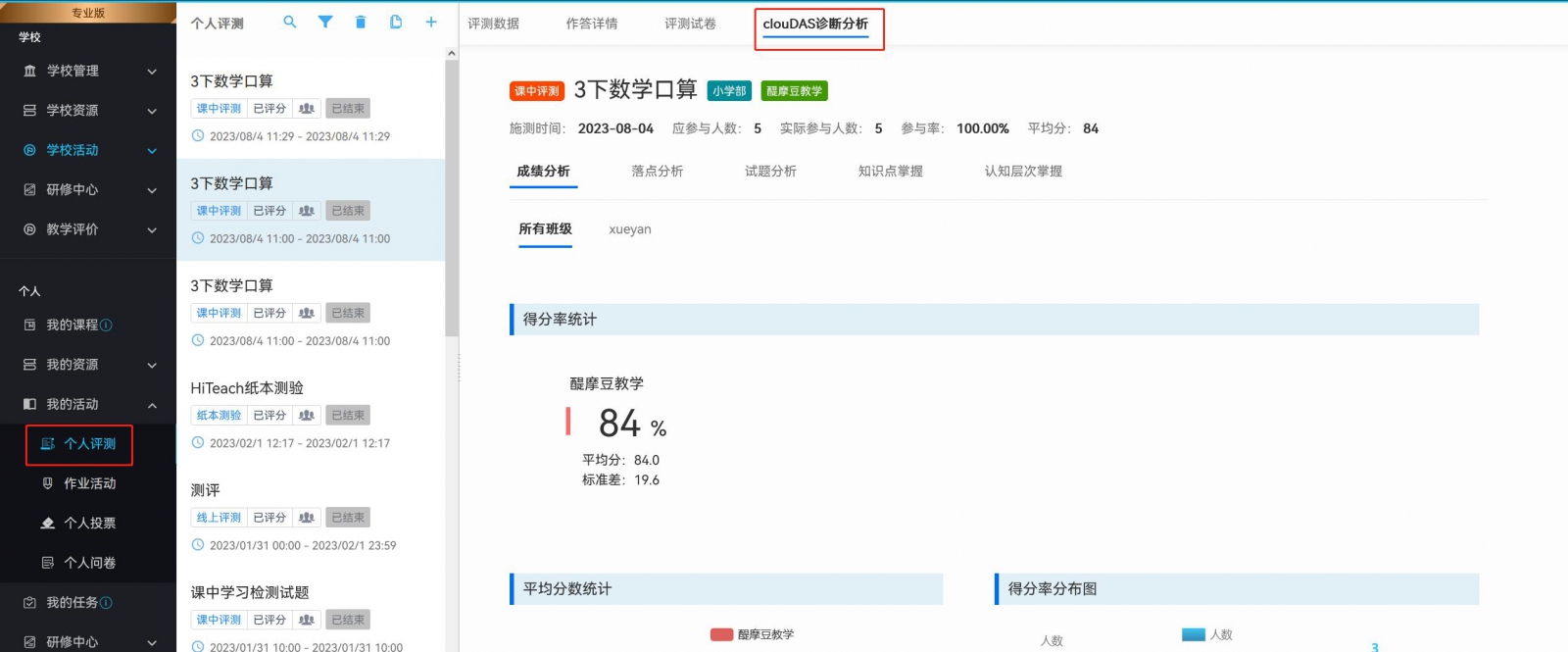 成績分析-班平均/平均分析/得分率分布/排名