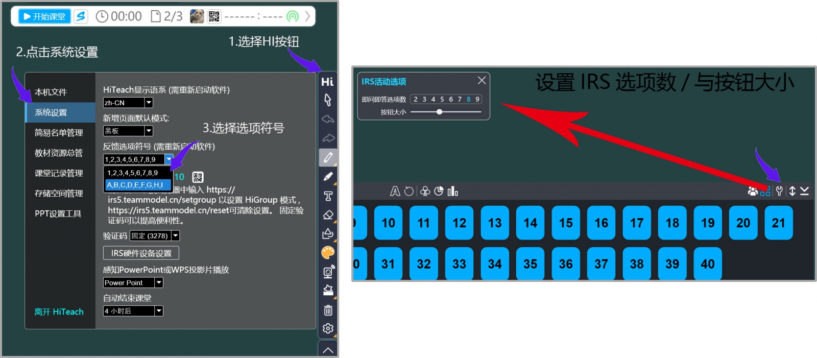 學(xué)生IRS反饋時的選項以數(shù)字或英文字母呈現(xiàn)、選項數(shù)、按鈕大小等都