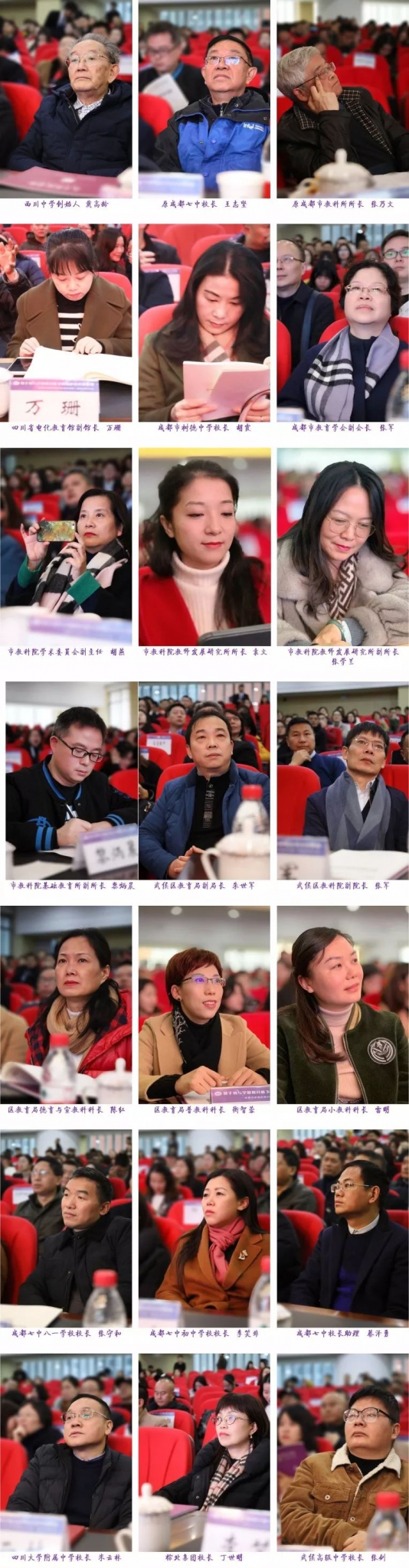 大咖云集 共話教育 本次研討會邀請到了成都市教育界各位重量級大咖:西川中學(xué)創(chuàng)始人、原成都七中校長戴高齡,成都市教育學(xué)會會長、原成都七中校長王志堅,成都市教育專家、原成都市教科所所長張乃文,四川省電化教育館副館長萬珊,成都市樹德中學(xué)校長胡霞,成都市教育學(xué)會副會長張軍,成都市教科院學(xué)術(shù)委員會副主任胡燕,成都市教科院教師發(fā)展研究所所長袁文、副所長張學(xué)蘭,成都市教科院基礎(chǔ)教育所副所長、中學(xué)語文教研員黎炳晨,武侯區(qū)教育局副局長朱世軍、德育與宣教科科長陳紅、普教科科長衡智蓉、小教科科長雷明,武侯區(qū)教科院副院長張軍等專家領(lǐng)導(dǎo)蒞臨現(xiàn)場。成都七中、石室中學(xué)、樹德中學(xué)、川大附中、七中初中、棕北中學(xué)、西川中學(xué)等多所兄弟學(xué)校的校長們蒞臨指導(dǎo)。武侯區(qū)教研員也親臨現(xiàn)場。