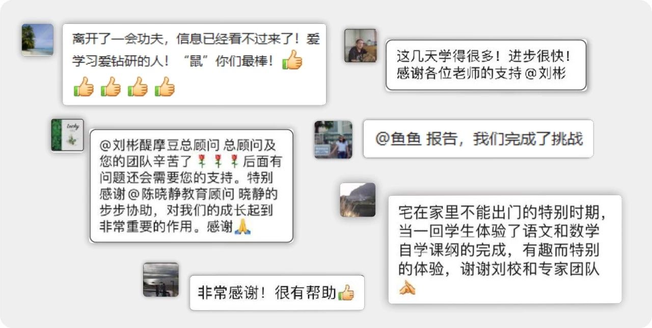 03/ 宅在家里不能出門的特殊時(shí)期,當(dāng)一回學(xué)生體驗(yàn)了語(yǔ)文和數(shù)學(xué)自學(xué)課綱的完成,有趣而又特別的體驗(yàn),謝謝劉校和專家團(tuán)隊(duì)。