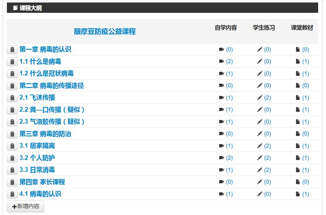 建設(shè)防疫特色課程,家庭共學(xué)習(xí) 學(xué)校還可以運(yùn)用醍摩豆自學(xué)課堂建設(shè)疫情防疫特色課程,全校老師共建共享。然后發(fā)布至學(xué)生端,孩子們?cè)诩壹纯珊图议L(zhǎng)進(jìn)行學(xué)習(xí),真正做到“預(yù)防病毒,人人有責(zé)”,將防疫知識(shí)帶給每一個(gè)家庭,每一個(gè)孩子。