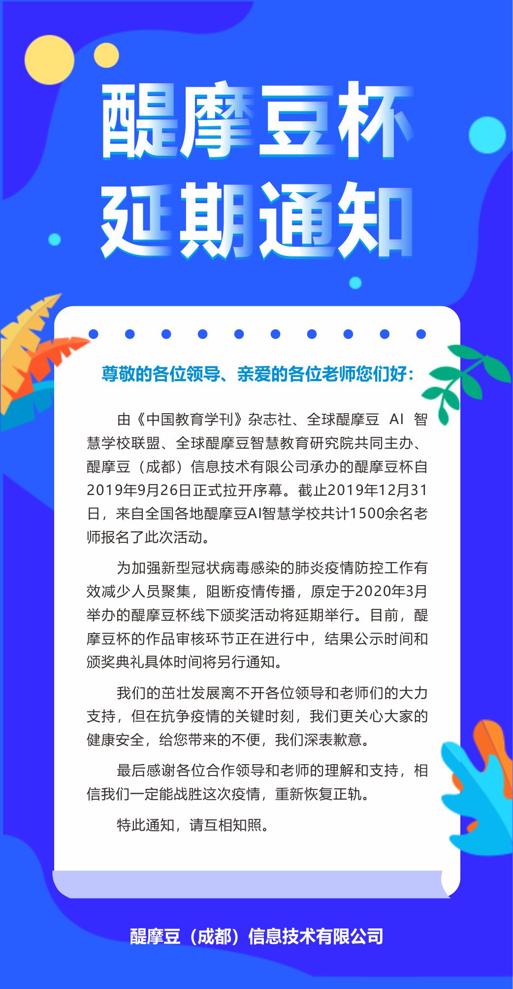第二屆醍摩豆杯線下頒獎將延期舉辦,調(diào)整時間另行通知