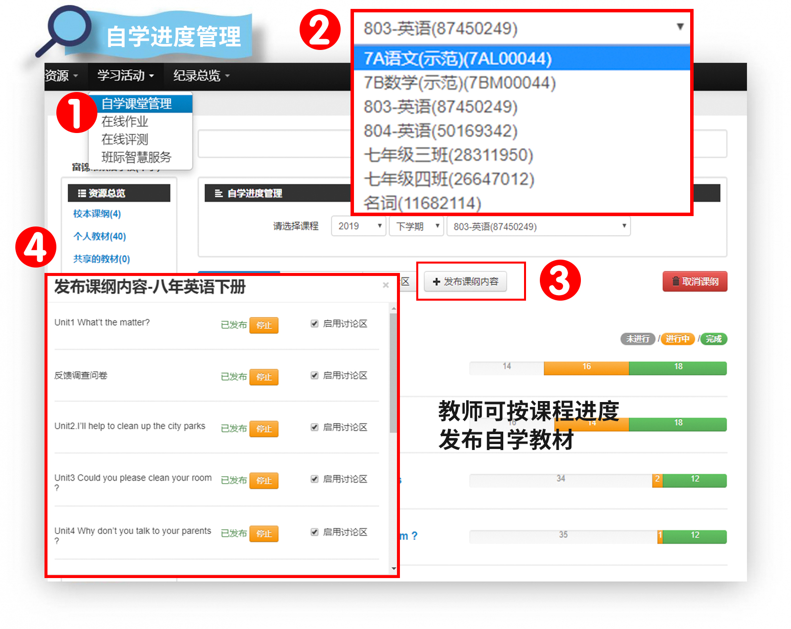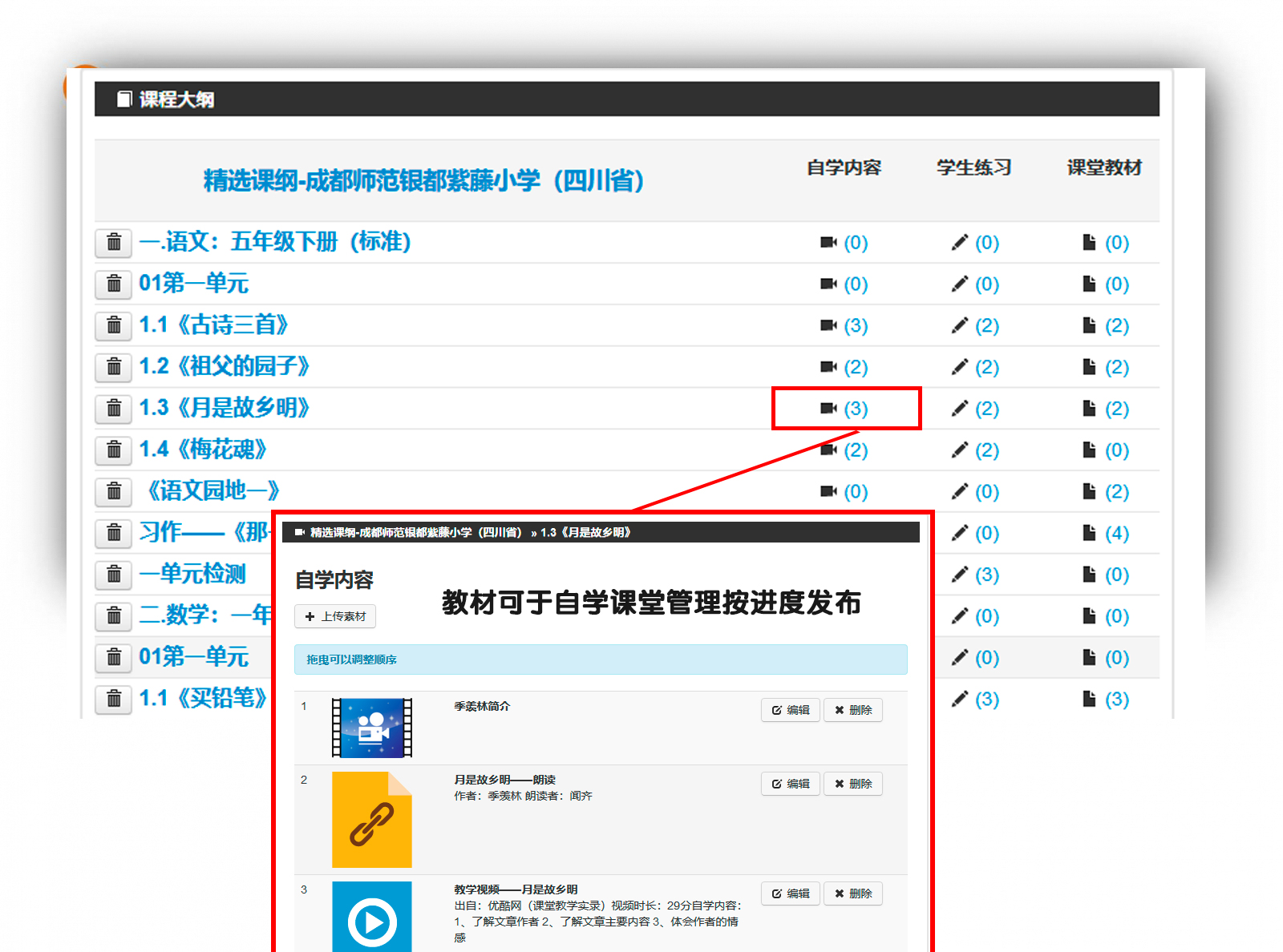 自學(xué)內(nèi)容-是讓學(xué)生在線自學(xué)的學(xué)習(xí)內(nèi)容 在線存取教學(xué)資源 備課很方便