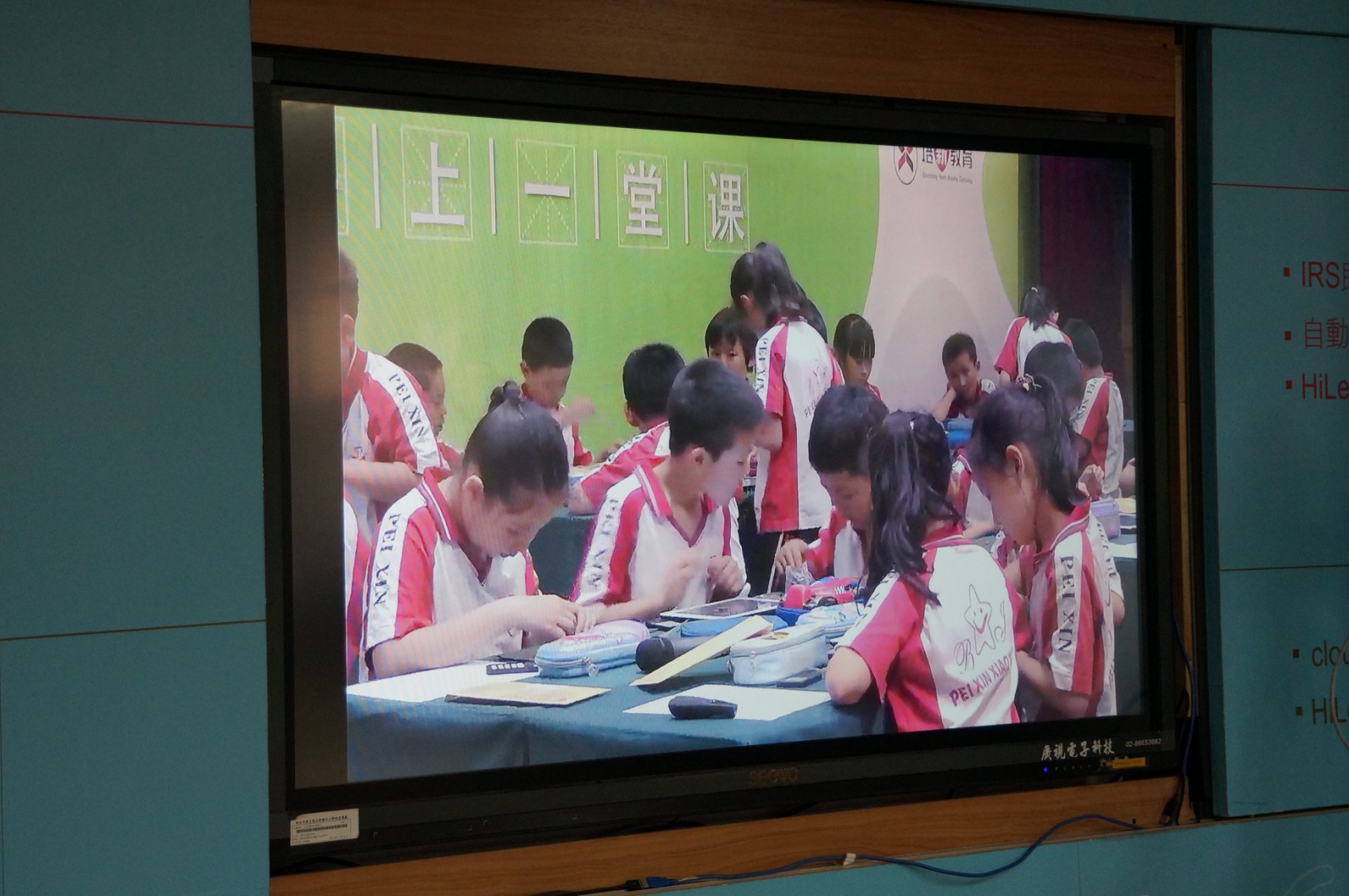 首先由培新小學(xué)的劉佳穎老師上場(chǎng),老師派發(fā)了許多不同圖形的實(shí)體教材讓學(xué)生進(jìn)行小組討論,將教材拼成不同的型狀,利用HiTA智慧助教APP拍攝學(xué)生作品,立即上傳熒幕讓全班觀看,進(jìn)行作品觀摩。而北新國小的許大偉老師,則是將課程內(nèi)容結(jié)合秘境探險(xiǎn),讓學(xué)生十分投入在課堂當(dāng)中,結(jié)合科技與實(shí)體教材,魔術(shù)般地從熒幕后面取出圖形教材,更是讓現(xiàn)場(chǎng)遠(yuǎn)距觀課的教師驚呼連連。