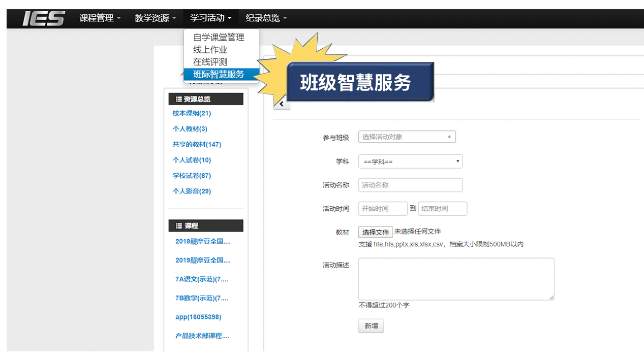 作為班際智慧服務(wù)的發(fā)起老師,老師可以選擇參與的班級(jí)、學(xué)科、活動(dòng)的時(shí)間、以及教材..等。