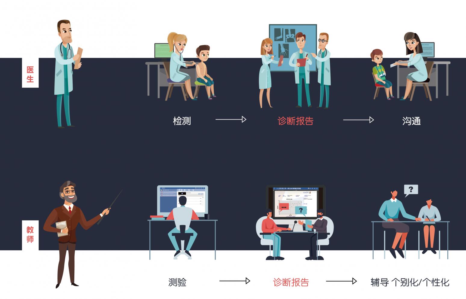 我們常會(huì)看到醫(yī)生透過(guò)精密的醫(yī)療檢測(cè)器材所產(chǎn)生的報(bào)告,對(duì)病人做出診斷且對(duì)癥下藥。在教學(xué)領(lǐng)域中,老師也可以像醫(yī)生一樣,利用評(píng)量數(shù)據(jù)的診斷分析報(bào)告來(lái)找出學(xué)生的弱項(xiàng),并提供學(xué)生有效地輔導(dǎo)策略,精準(zhǔn)數(shù)據(jù)決策。老師透過(guò)測(cè)驗(yàn)后的診斷報(bào)告,調(diào)整每位學(xué)生個(gè)別化的輔導(dǎo)策略。