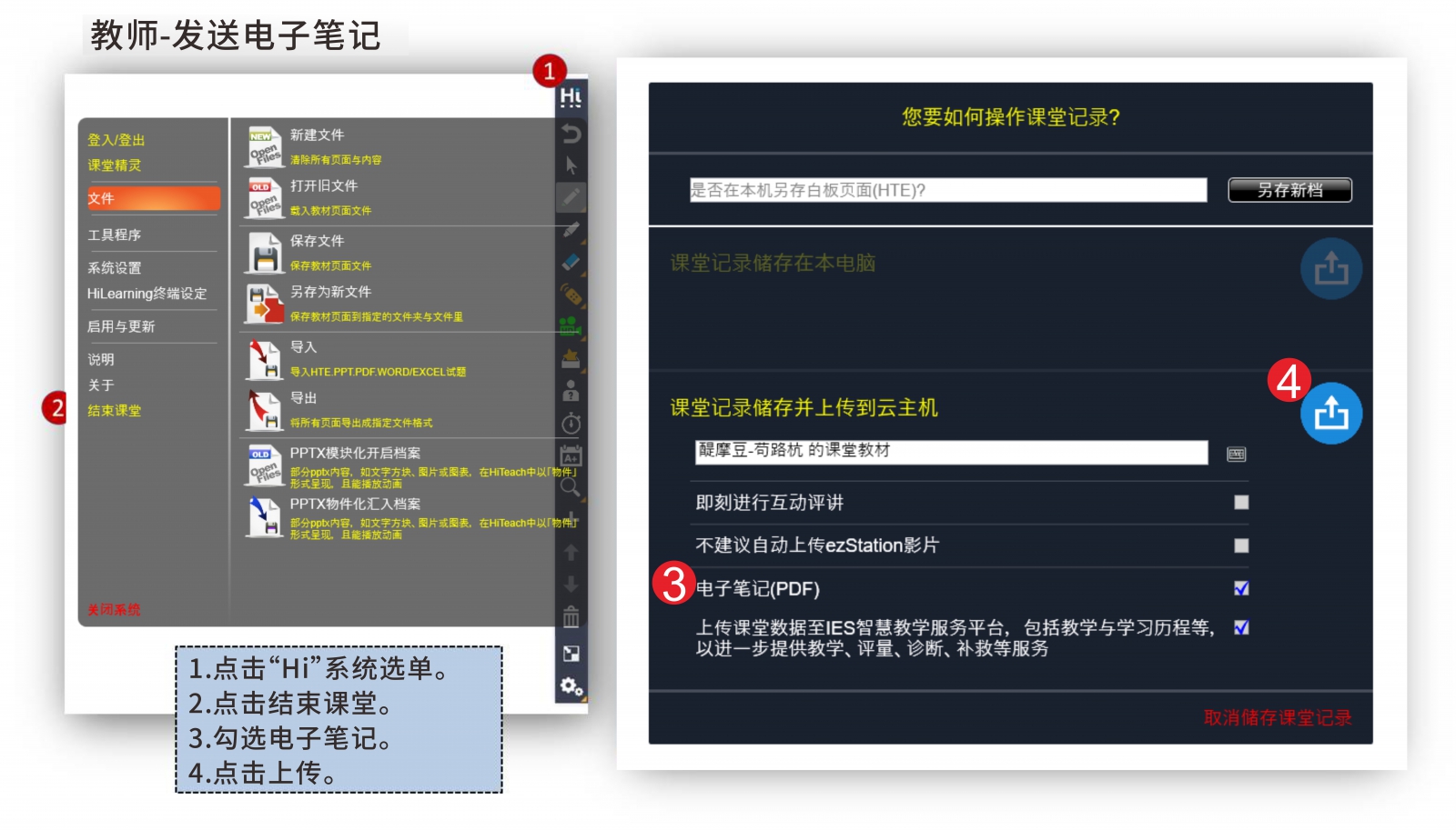 當評講完成后,教師只要結束課堂即可將評講的頁面存成電子筆記并上傳IES云平臺,讓學生在家也能再次復習評講的內容。
