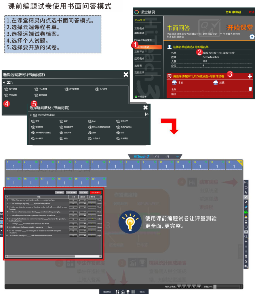 書面問答模式是快速使用紙本試卷的測驗方式,是能夠將紙本試卷及HiTeach智慧教學系統(tǒng)作結合的測驗模式,甚至可以不用在課前完成編題就能做好評量測驗。
