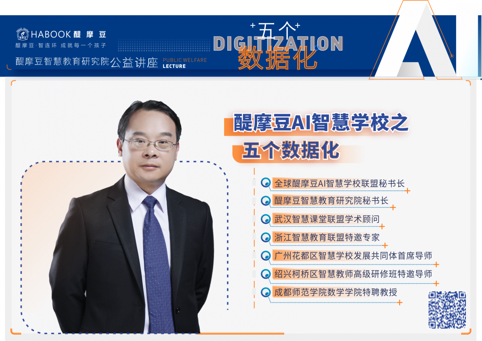 本次講座主題為“醍摩豆AI智慧學(xué)校之五個(gè)數(shù)據(jù)化”,由醍摩豆智慧教育研究院秘書長劉彬教授在線主講。