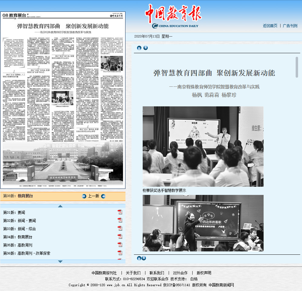 <點擊圖片即可查閱完整報道> 南京特殊教育師范學院在智慧教育領域的快速發(fā)展受到了《中國教育報》、