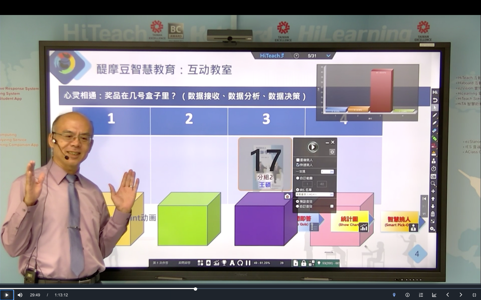 初期使用HiTeach,利用搶權(quán)工具和挑人工具,再進(jìn)一步應(yīng)用反饋數(shù)據(jù)的智慧挑人,就可以大幅提升師生互動(dòng)的效能,只需小小改變,就有大大效益。