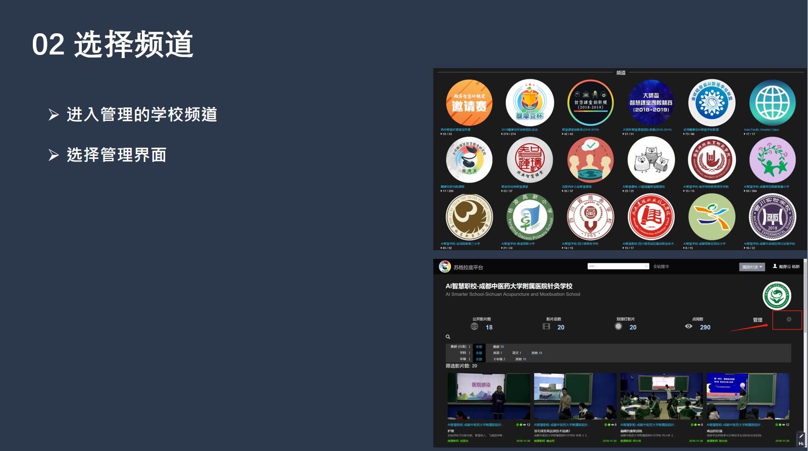 2、選擇頻道 01.進(jìn)入管理的學(xué)校頻道