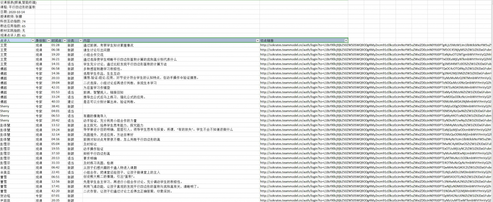 在精彩的智慧課之后,趙芡老師帶著來賓們進入“紫藤藏經(jīng)閣”——智慧典藏頻道,對每一個環(huán)節(jié)進行切片分析,開啟基于數(shù)據(jù)和實證的智慧教研。教師們借助評課APP,在觀課時及時標記評課意見。課后,一鍵生成“眾籌智慧聽課本”。來自各地的老師們分成小組,真實體驗TBL團隊互動式教研,大家紛紛感嘆,智慧教研精準、高效,是促進教師專業(yè)成長的新型教研模式。