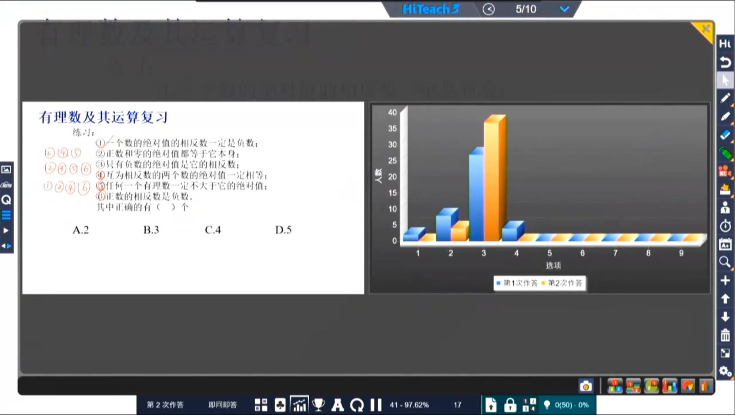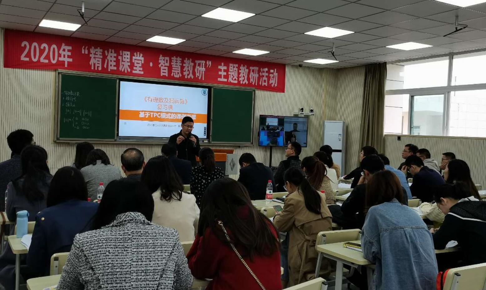 10月27日下午,由《中國教育學(xué)刊》四川學(xué)用刊中心、全球醍摩豆智慧教育研究院聯(lián)合四川師范大學(xué)附屬青臺(tái)山中學(xué)等單位共同舉辦的“2020年‘精準(zhǔn)課堂,智慧教研’”主題研討活動(dòng)在四川師范大學(xué)附屬青臺(tái)山中學(xué)如期舉行,活動(dòng)旨在更好地促進(jìn)大數(shù)據(jù)環(huán)境下的智慧學(xué)校發(fā)展,開展智慧教育實(shí)踐與理論相結(jié)合的教育教學(xué)模式、互學(xué)互鑒。 首先,四川師范大學(xué)附屬青臺(tái)山中學(xué)林杰老師和七年級(jí)6班的孩子們帶來了精彩的數(shù)學(xué)智慧復(fù)習(xí)課——《有理數(shù)及其運(yùn)算》。因?yàn)槭菑?fù)習(xí)課,林杰老師首先運(yùn)用IRS反饋器收集學(xué)生課前預(yù)習(xí)的學(xué)習(xí)情況,再隨后的隨堂檢測中,林杰老師布置了十余道數(shù)學(xué)復(fù)習(xí)題,在復(fù)習(xí)題的解答過程中,老師及時(shí)抓住教學(xué)契機(jī),將即問即答、二次作答、作品觀摩、智慧挑人等信息化技術(shù)手段有效融入課堂,引導(dǎo)學(xué)生獨(dú)立思考和互動(dòng)交流。同時(shí),搶權(quán)、倒計(jì)時(shí)等小工具的運(yùn)用大大激發(fā)了學(xué)生學(xué)習(xí)熱情。課后林杰老師基于TPC模式進(jìn)行說課,在生本理念下,關(guān)注學(xué)習(xí)與TPC技術(shù)的融合運(yùn)用。從新技術(shù)、新教法、新教材等方面進(jìn)行詳細(xì)的闡述。