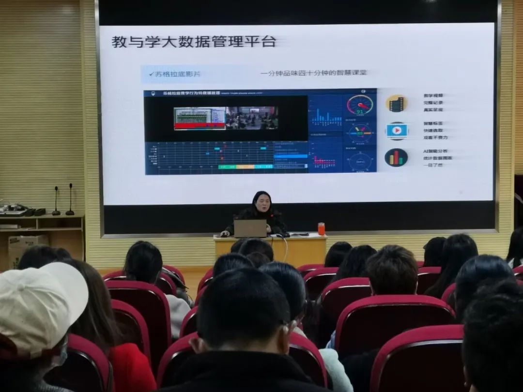 最后,徐江校長給大家?guī)砹酥v座《教學(xué)設(shè)計(jì)有效性思考》。在講座中,徐校長就我校借助醍摩豆蘇格拉底平臺進(jìn)行智慧教研,促進(jìn)教師專業(yè)成長的探索給大家做了分享。
