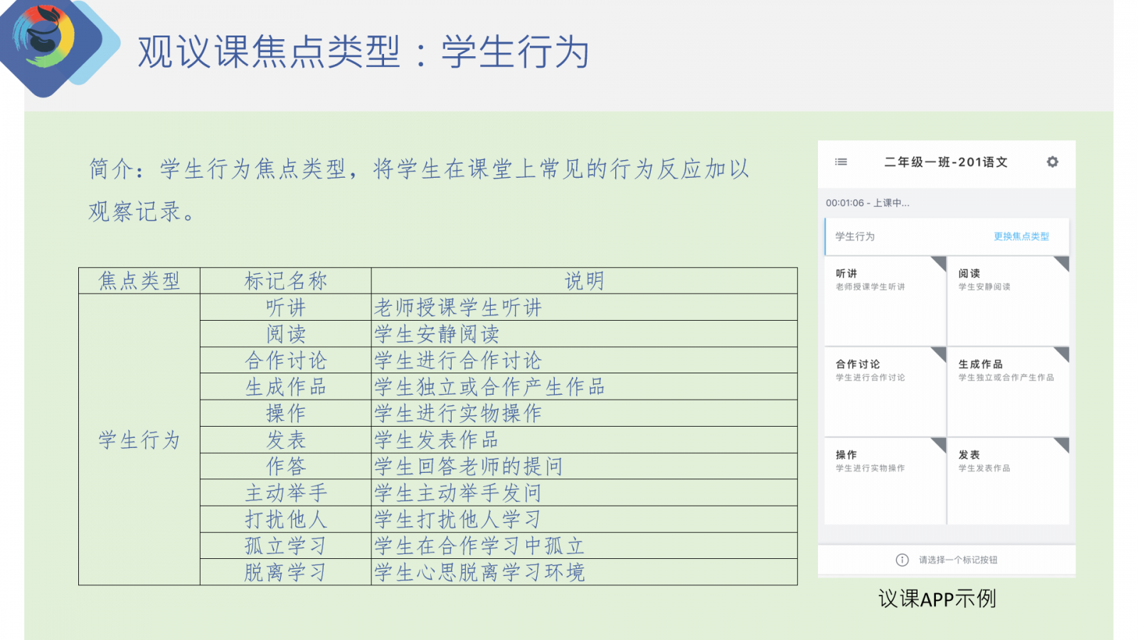 簡介:學(xué)生行為焦點(diǎn)類型,將學(xué)生在課堂上常見的行為反應(yīng)加以觀察記錄。