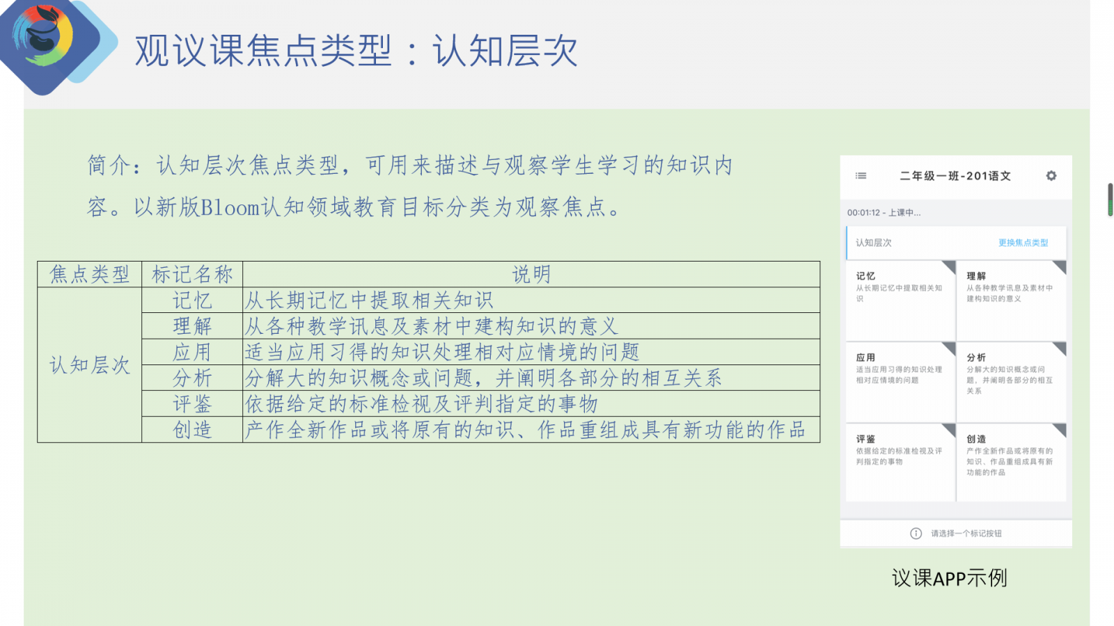 簡介:認(rèn)知層次焦點(diǎn)類型,可用來描述與觀察學(xué)生學(xué)習(xí)的知識(shí)內(nèi)容。以新版Bloom認(rèn)知領(lǐng)域教育目標(biāo)分類為觀察焦點(diǎn)。