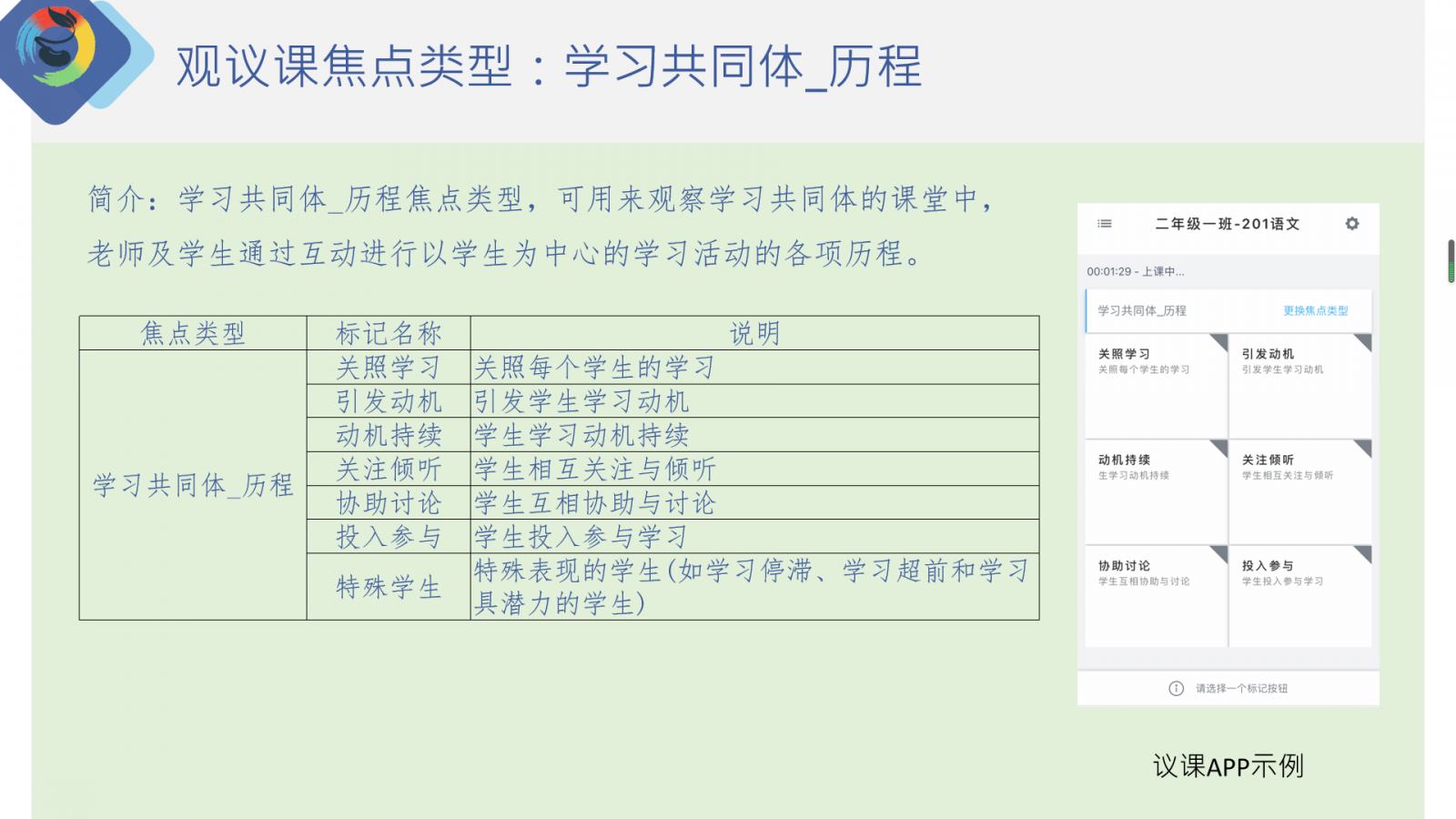 簡介:學(xué)習(xí)共同體_歷程焦點(diǎn)類型,可用來觀察學(xué)習(xí)共同體的課堂中,老師及學(xué)生透過互動(dòng)進(jìn)行以學(xué)生為中心的學(xué)習(xí)活動(dòng)的各項(xiàng)歷程。