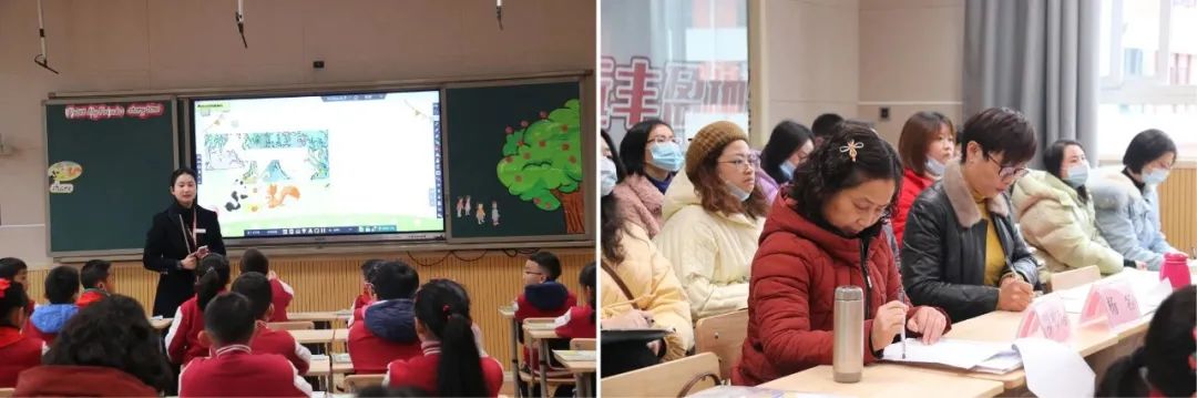 在英語分會(huì)場(chǎng)上,易啟紅老師和2.4班的同學(xué)們帶來了課堂展示《Unit3 My Friends Story Time》。觀課老師們從情景創(chuàng)設(shè)和課堂互動(dòng)這兩個(gè)維度進(jìn)行了細(xì)致的觀察。