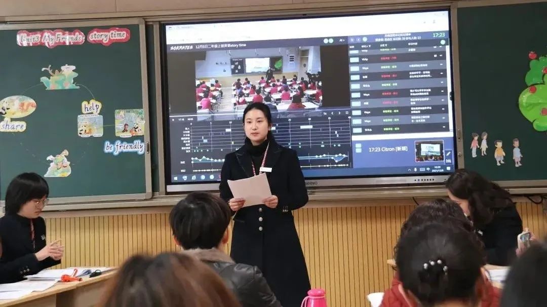 在AI教研中心,數(shù)學(xué)課例研修展示也如火如荼地進(jìn)行著。王瑩老師以北師大版二年級(jí)上冊(cè)第六單元《課桌有多長(zhǎng)》為例進(jìn)行了課例展示。王瑩老師睿智的語言如春風(fēng)化雨一般,學(xué)生們積極地參與了課堂知識(shí)的探究。在觀課過程中,觀課老師們也從不同的板塊進(jìn)行了觀察、填寫了量表。