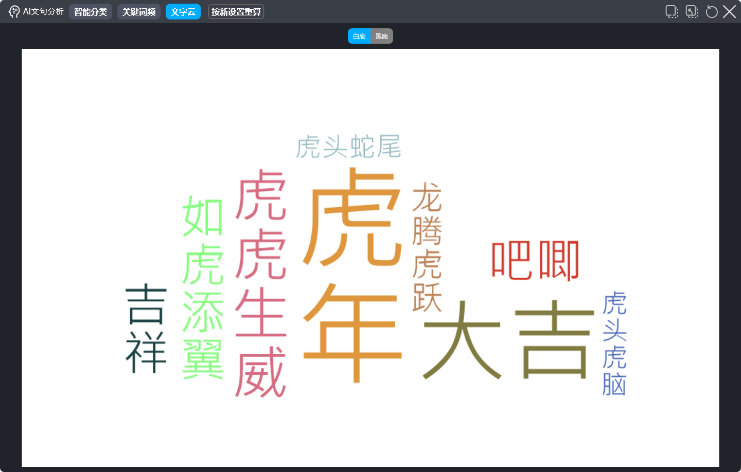 新推出AI文句分析模塊,幫助快速處理大量涌入的文字資料,減輕教學(xué)負(fù)擔(dān)。不一樣的AI文字云 | 深度分析文句