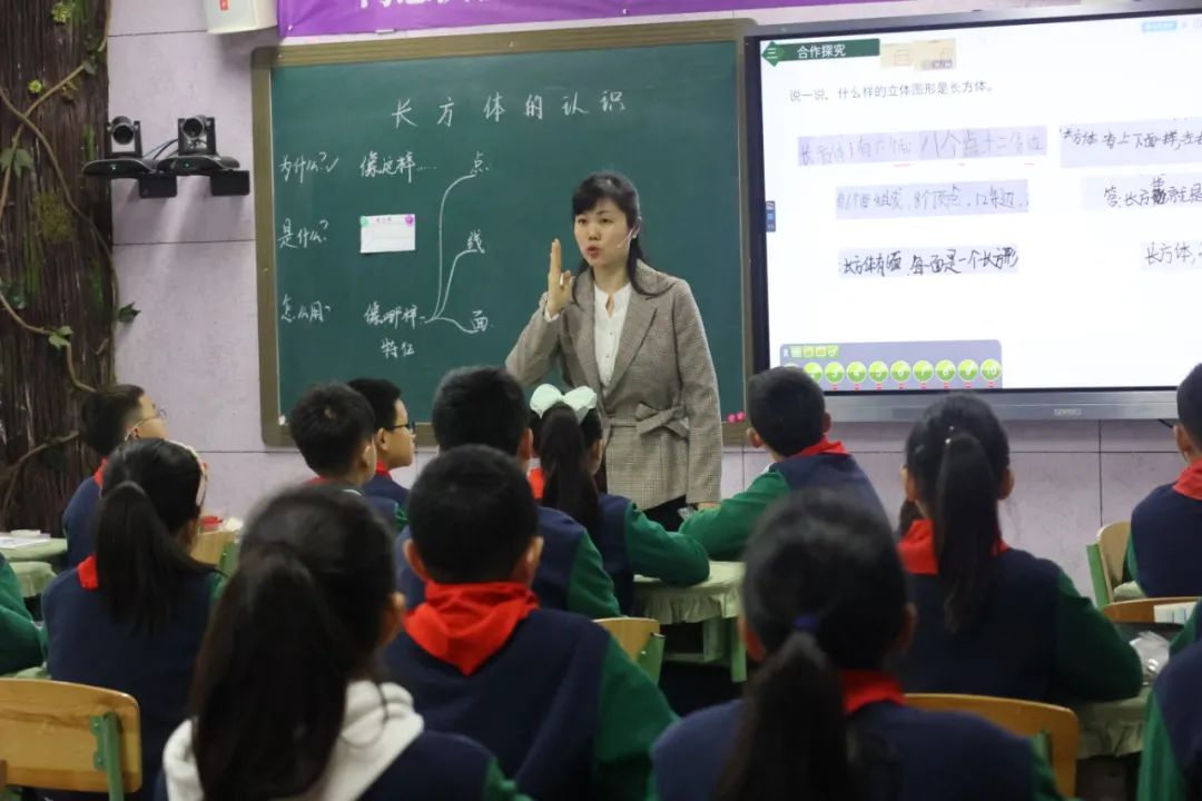 活動(dòng)中,馬宏韜副校長(zhǎng)帶來(lái)了一堂精彩絕倫的智慧課例。以《長(zhǎng)方體的認(rèn)識(shí)》為主題,首次利用醍摩豆5代系統(tǒng)和具有紫藤小學(xué)特色的智慧課堂教學(xué)形式,帶領(lǐng)學(xué)生們一步步認(rèn)識(shí)了長(zhǎng)方體的概念和特征。