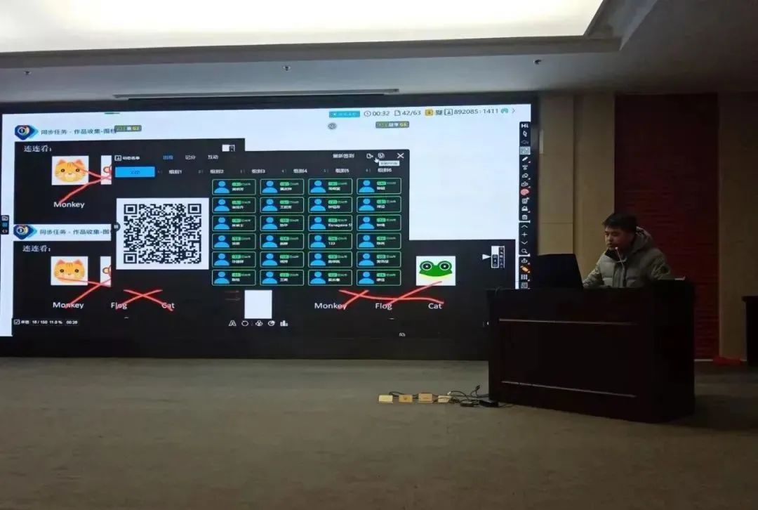 此次活動(dòng)特邀醍摩豆(成都)信息技術(shù)有限公司的培訓(xùn)講師黃朋為全體教師作了智慧課堂培訓(xùn)。黃老師精彩生動(dòng)地展示了醍摩豆智慧課堂常用工具:即問即答、搶權(quán)作答、飛遞飛訊、作品分享等等。這些功能操作簡(jiǎn)單、分類清晰、共享便捷、使用方便,全場(chǎng)聽課的老師們專心聽講,積極互動(dòng),收獲頗豐。