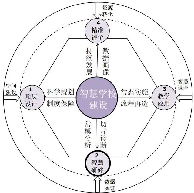 在數(shù)據(jù)的精準(zhǔn)支持下,案例通過“頂層設(shè)計、智慧研修、課堂實踐、精準(zhǔn)評估”四個環(huán)節(jié)提升教師信息技術(shù)與教育教學(xué)深度融合的能力。