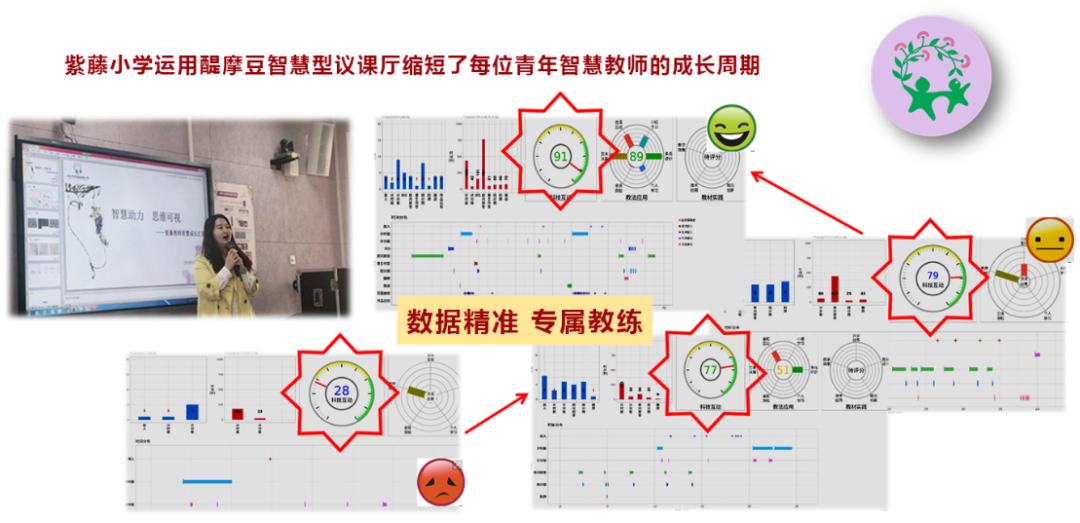 以數(shù)據(jù)驅(qū)動頂層設(shè)計,精準(zhǔn)導(dǎo)航科學(xué)規(guī)劃。借助數(shù)據(jù)常模,精準(zhǔn)制定學(xué)校、研修組、教師個人三級發(fā)展規(guī)劃,形成“三智一特”智慧教師進(jìn)階機(jī)制,激發(fā)教師內(nèi)驅(qū)力,學(xué)校長效發(fā)展充滿活力。