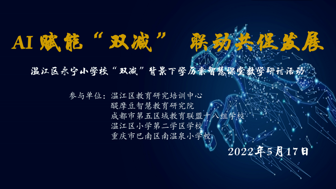 近日,“AI賦能雙減,聯(lián)動共促發(fā)展”——溫江區(qū)永寧小學(xué)校“雙減”背景下學(xué)歷案智慧課堂教學(xué)研討活動順利開展,活動還通過釘釘?shù)绕脚_進(jìn)行全程直播。