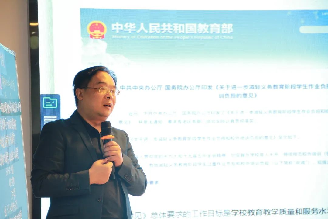 專家講座 醍摩豆智慧教育研究院劉彬教授帶來專題講座——《雙減背景下的“教—學(xué)—研”新生態(tài)》。講座首先讓老師們再次強(qiáng)化“雙減”認(rèn)識,以及做好“雙減”的三提升策略:提升教學(xué)質(zhì)量聚焦“課堂”;提升學(xué)習(xí)成果聚焦“學(xué)情”;提升育人能力聚焦“教師”。接著和大家一起探討究竟什么是真正的智慧課堂?所謂智慧課堂,不是技術(shù)和設(shè)備的堆砌,而是在“悟”中學(xué),目標(biāo)是指向核心素養(yǎng)的,知識是師生共同創(chuàng)造的,學(xué)習(xí)方式是多元的,數(shù)據(jù)是可以追蹤使用的,資源是師生共建的……最后,劉教授就今天的兩節(jié)課例借助現(xiàn)場生成的數(shù)據(jù)切點(diǎn)智慧教研,帶領(lǐng)現(xiàn)場老師一起走進(jìn)云端教研新模式。