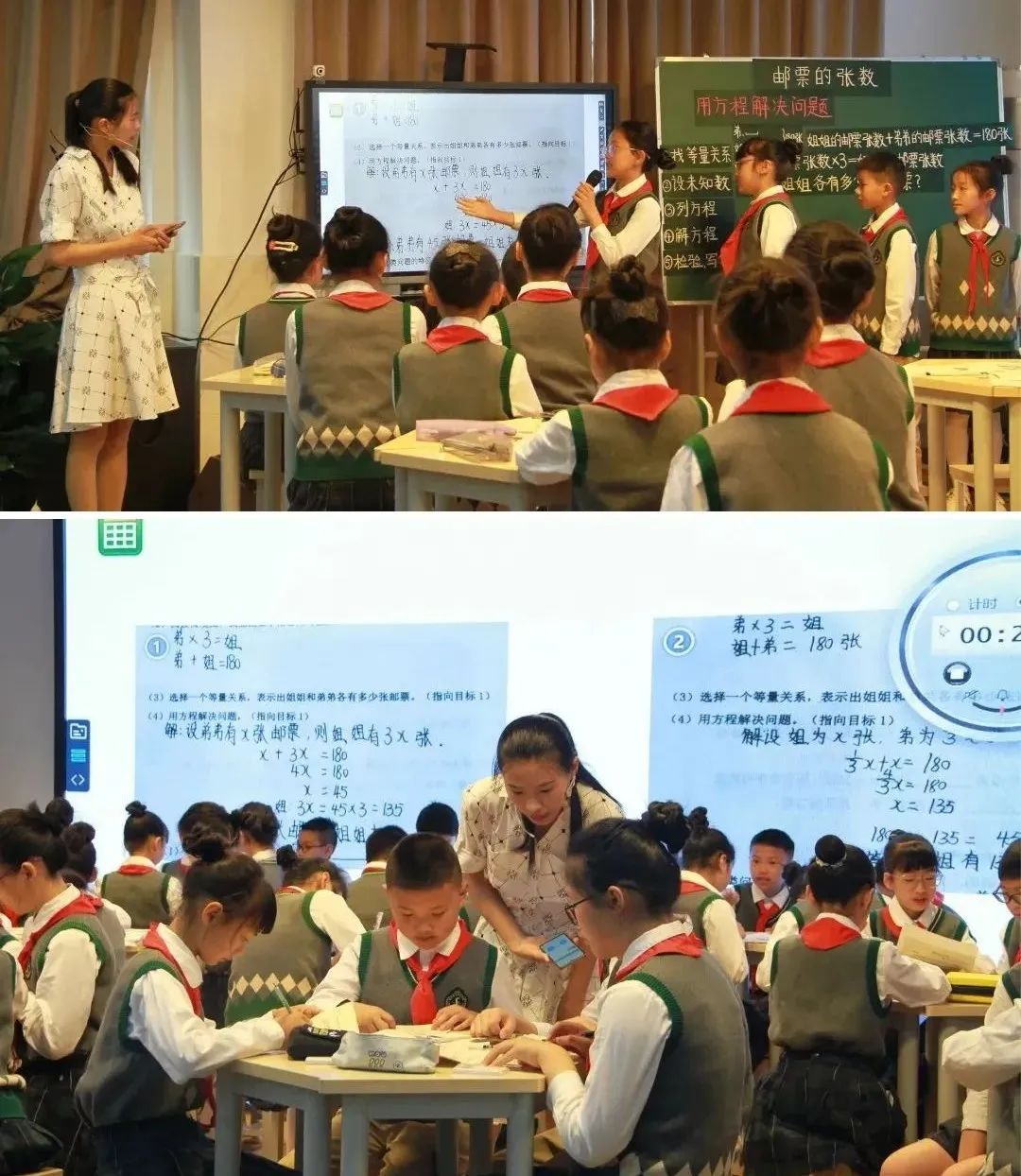 林俊老師執(zhí)教《郵票的張數(shù)》,基于學(xué)生學(xué)情,評價任務(wù)精準(zhǔn)指向,助目標(biāo)達(dá)成;基于學(xué)生學(xué)會,評價任務(wù)逐級遞增,助目標(biāo)達(dá)成;基于“AI”技術(shù)輔助教學(xué),評價任務(wù)及時反饋,助目標(biāo)達(dá)成,引導(dǎo)學(xué)習(xí)用方程解決“和倍”問題。舉一反三,通過例題學(xué)習(xí)“差倍”問題。課堂中,林老師利用反饋器及時了解學(xué)生的知識掌握情況,通過小組加分功能激發(fā)學(xué)生學(xué)習(xí)積極性。