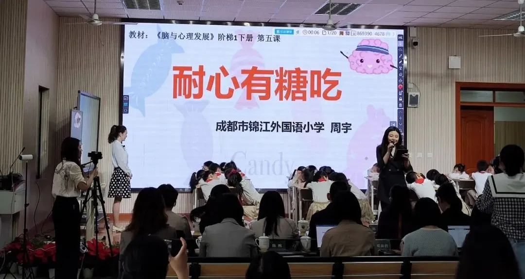 隨后,由腦育課程專(zhuān)職教師周宇老師帶來(lái)《耐心有糖吃》,通過(guò)“聲東擊西”“棉花糖實(shí)驗(yàn)”“腦力大比拼、大腦與生活”和“班級(jí)小彩蛋”各類(lèi)游戲活動(dòng),讓學(xué)生在體驗(yàn)中,增強(qiáng)自控力。