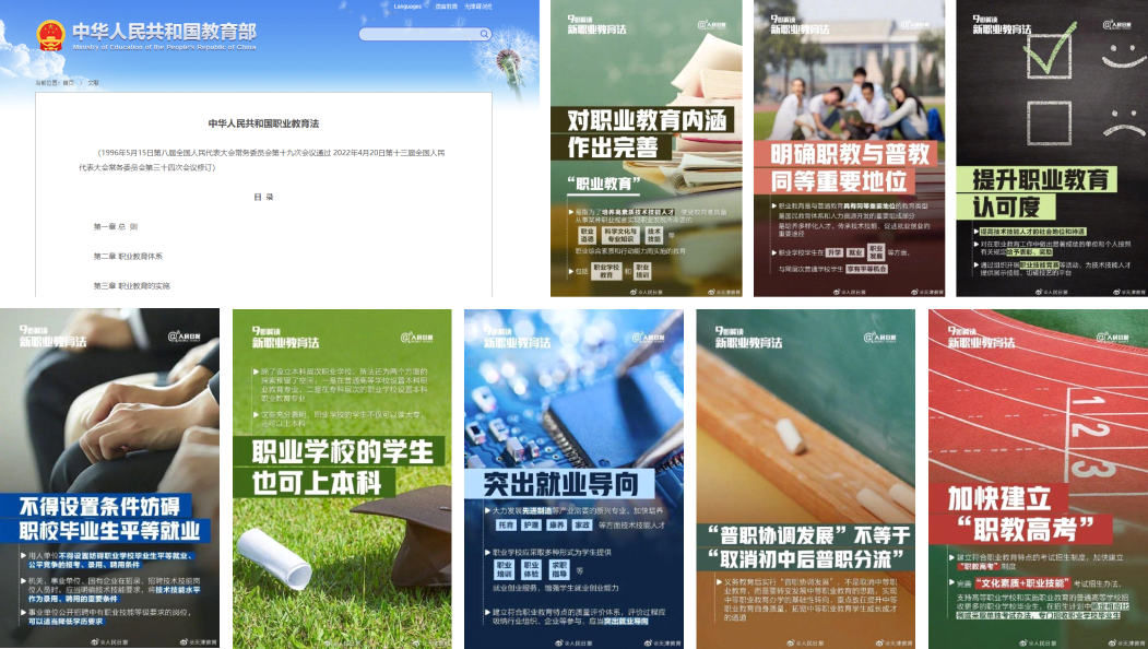 4月20日,十三屆全國(guó)人大常委會(huì)第三十四次會(huì)議表決通過(guò)新修訂的職業(yè)教育法,將從2022年5月1日起施行。這是該法自1996年頒布施行以來(lái)的首次大修。新版職業(yè)教育法明確提出:支持運(yùn)用信息技術(shù)和其他現(xiàn)代化教學(xué)方式,開(kāi)發(fā)職業(yè)教育網(wǎng)絡(luò)課程等學(xué)習(xí)資源,創(chuàng)新教學(xué)方式和學(xué)校管理方式,推動(dòng)職業(yè)教育信息化建設(shè)與融合應(yīng)用。