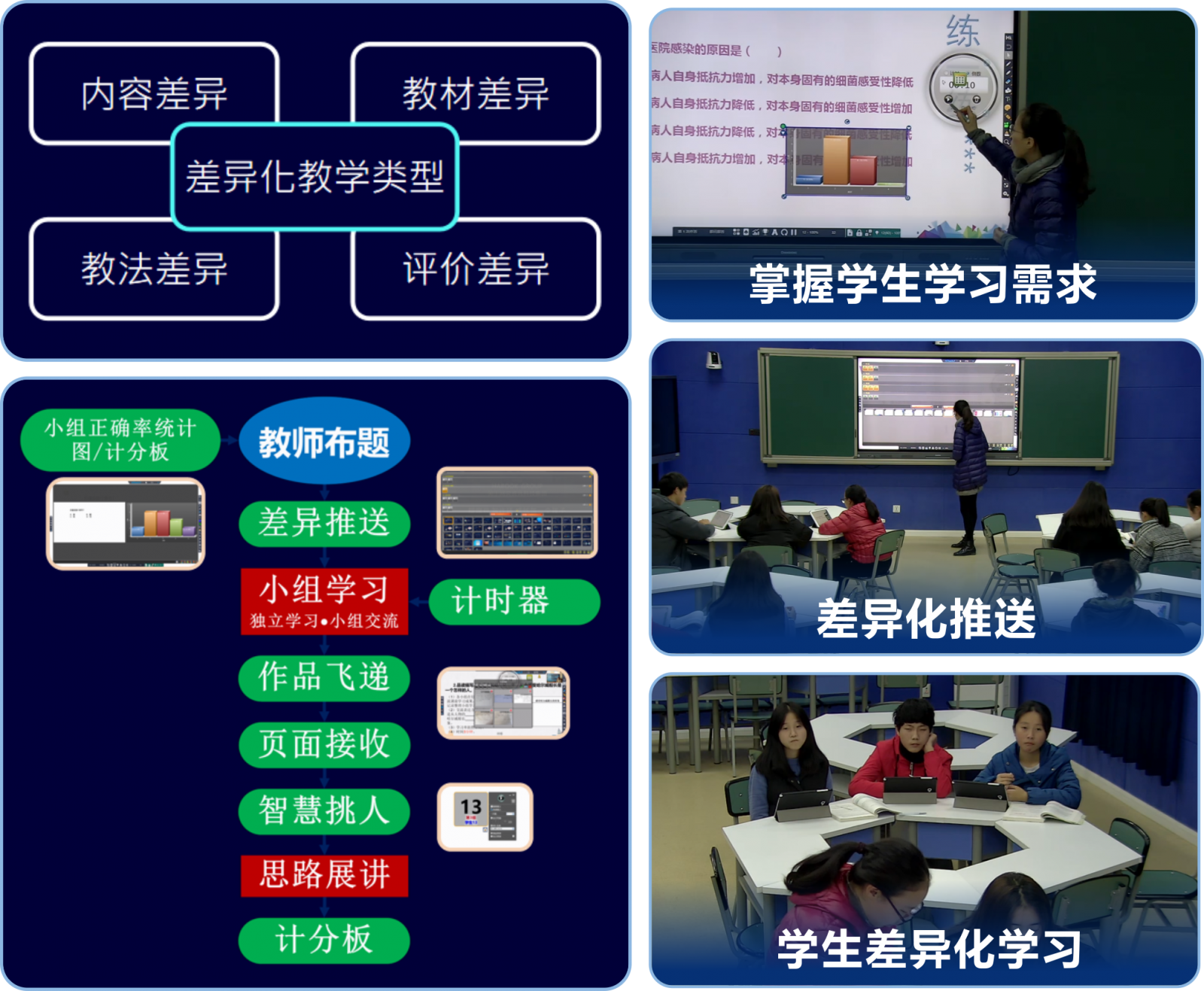 “因材施教”是指在教學(xué)中根據(jù)不同學(xué)生的認(rèn)知水平、學(xué)習(xí)能力以及自身素質(zhì),教師選擇適合每個(gè)學(xué)生特點(diǎn)的學(xué)習(xí)方法來(lái)有針對(duì)性的教學(xué),發(fā)揮學(xué)生的長(zhǎng)處,彌補(bǔ)學(xué)生的不足,激發(fā)學(xué)生學(xué)習(xí)的興趣,樹(shù)立學(xué)生學(xué)習(xí)的信心,從而促進(jìn)學(xué)生全面發(fā)展。醍摩豆智慧教室的差異推送功能完美幫助老師課堂上因材施教的難題,老師根據(jù)數(shù)據(jù)統(tǒng)計(jì)掌握學(xué)情,并根據(jù)學(xué)情分組精準(zhǔn)推送教學(xué)任務(wù),學(xué)生會(huì)收到滿足自己學(xué)習(xí)需求的不同教材,實(shí)現(xiàn)差異化學(xué)習(xí)。