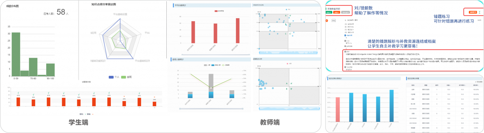 測(cè)驗(yàn)完成后,這些數(shù)據(jù)也會(huì)在云端形成作答紀(jì)錄,錯(cuò)題集,不管對(duì)教師學(xué)情掌握或?qū)W生自我系統(tǒng)性補(bǔ)救學(xué)習(xí),都帶來(lái)極大的幫助。同時(shí),云平臺(tái)還能能高效率地分析大量數(shù)據(jù)并產(chǎn)出學(xué)習(xí)診斷分析報(bào)告,全方位采集學(xué)生綜合素質(zhì)數(shù)據(jù),為各級(jí)使用者精準(zhǔn)的提供學(xué)習(xí)狀況與學(xué)習(xí)成效,將評(píng)價(jià)環(huán)節(jié)綜合應(yīng)用在學(xué)習(xí)過(guò)程中,落實(shí)教學(xué)精進(jìn)策略,提升學(xué)校及學(xué)生的競(jìng)爭(zhēng)力。