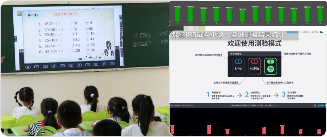 學(xué)生端通過IRS反饋器同步作答,測驗(yàn)完成,即刻生成數(shù)據(jù)統(tǒng)計(jì),知識(shí)點(diǎn)掌握一目了然,老師根據(jù)測試情況了解學(xué)生學(xué)習(xí)中的難點(diǎn)與不足,并進(jìn)行重難點(diǎn)知識(shí)點(diǎn)講解,為教學(xué)優(yōu)化奠定基礎(chǔ),實(shí)現(xiàn)減負(fù)增效。