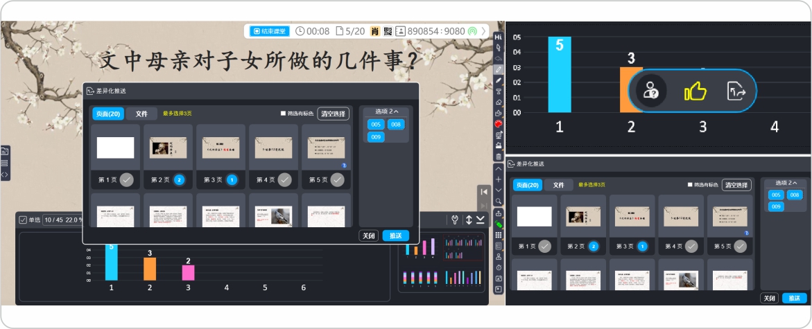 差異推送功能幫助老師解決課堂上因材施教的難題,老師根據(jù)數(shù)據(jù)統(tǒng)計(jì)掌握學(xué)情,并通過學(xué)情分組精準(zhǔn)推送不同難度、需求的教學(xué)任務(wù)。