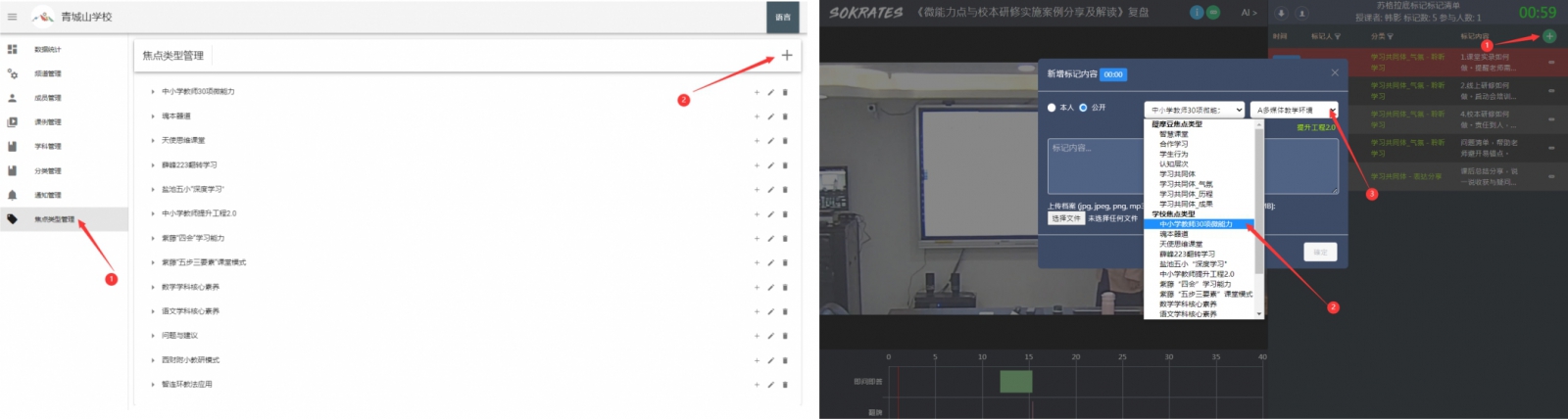 能自動生成課堂影片和專家議課報表,在影片中自動對應(yīng)課堂互動紀(jì)錄與觀課者意見,點(diǎn)選智慧標(biāo)記可以迅速切換對應(yīng)時間點(diǎn),協(xié)助教研團(tuán)隊(duì)更科學(xué)、更高效地進(jìn)行議課與教研活動!