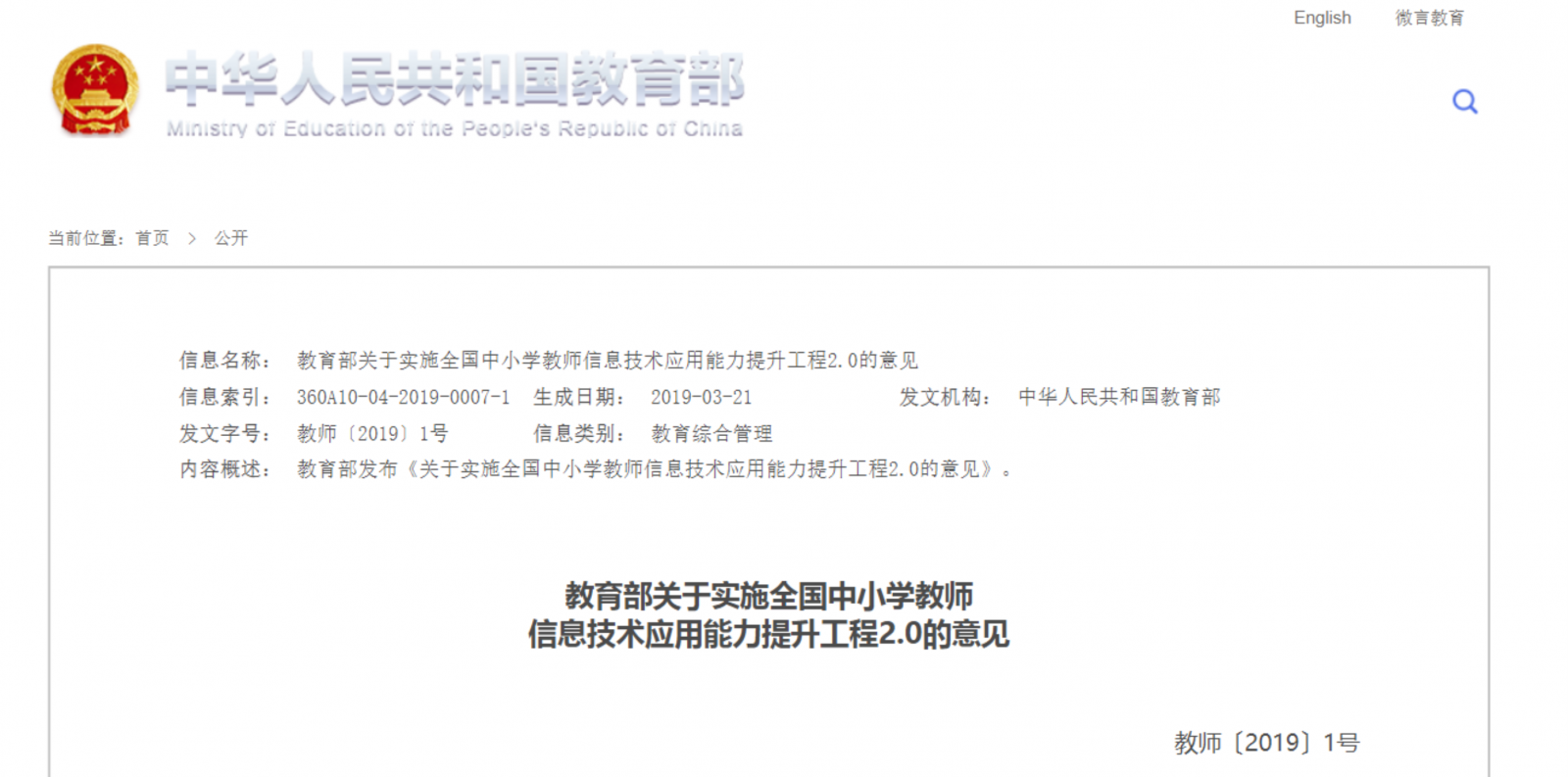 教育部發(fā)布《關(guān)于實(shí)施全國中小學(xué)教師信息技術(shù)應(yīng)用能力提升工程2.0的意見》,著力推動全國中小學(xué)教師提升信息技術(shù)應(yīng)用能力。重點(diǎn)關(guān)注學(xué)校信息化教育教學(xué)發(fā)展規(guī)劃、校本研修計(jì)劃、校本研修的過程性數(shù)據(jù)等;關(guān)注學(xué)校信息化教育教學(xué)發(fā)展規(guī)劃的實(shí)施情況,包括信息化教育教學(xué)創(chuàng)新成果及應(yīng)用轉(zhuǎn)化等;關(guān)注教師個人信息化教育教學(xué)能力提升計(jì)劃、課程學(xué)習(xí)記錄,以及校本研修與實(shí)踐應(yīng)用情況、關(guān)注教師與本校信息化環(huán)境相適應(yīng)的信息化教育教學(xué)應(yīng)用成果。
