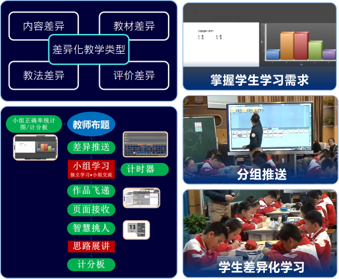 所謂“因材施教”是指在教學(xué)中根據(jù)不同學(xué)生的認(rèn)知水平、學(xué)習(xí)能力以及自身素質(zhì),教師選擇適合每個(gè)學(xué)生特點(diǎn)的方法來(lái)進(jìn)行有針對(duì)性的教學(xué),發(fā)揮學(xué)生的長(zhǎng)處,彌補(bǔ)學(xué)生的不足,激發(fā)學(xué)生學(xué)習(xí)的興趣,樹(shù)立學(xué)生學(xué)習(xí)的信心,從而促進(jìn)學(xué)生全面發(fā)展。醍摩豆智慧教室的差異推送功能完美化解老師課堂上因材施教的難題,老師根據(jù)數(shù)據(jù)統(tǒng)計(jì)掌握學(xué)情,并根據(jù)學(xué)情分組精準(zhǔn)推送教學(xué)任務(wù),學(xué)生會(huì)收到滿(mǎn)足自己學(xué)習(xí)需求的不同教材,實(shí)現(xiàn)差異化學(xué)習(xí)。