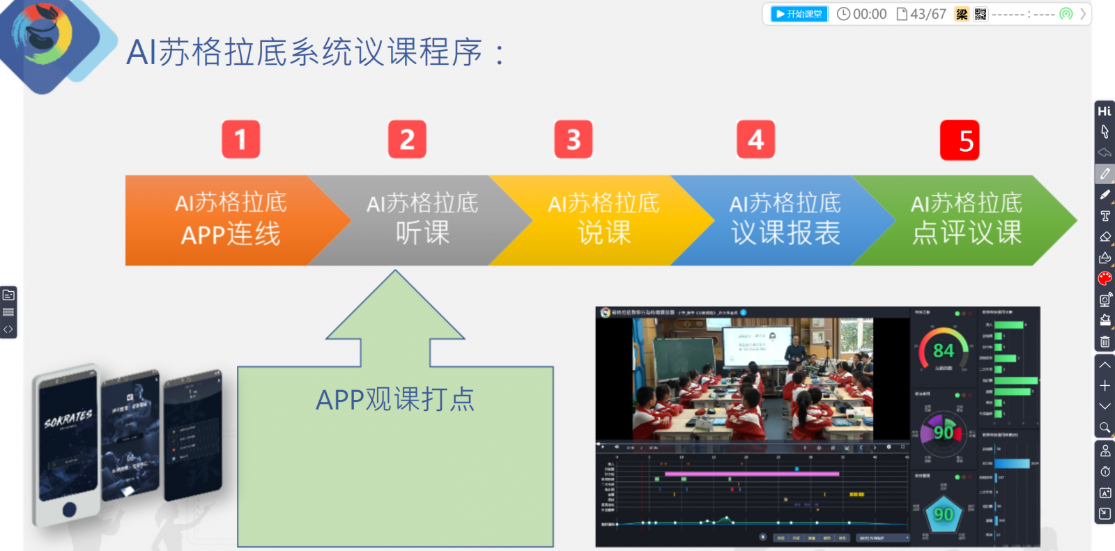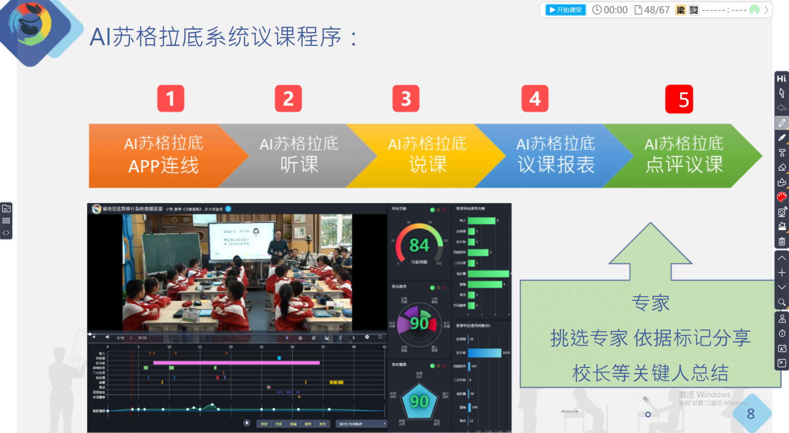 隨后,中國教育學刊四川省學用刊中心副主任劉彬教授帶來專題培訓《技術賦能下的教、學、研新樣態(tài)》。培訓的上半場,劉彬教授首先給老師們演示的是互動實操:互動參與、數(shù)據(jù)決策、精準教學、多元思考、有效評價、同步差異、因材施教,并針對每一個工具設置對應的互動小測驗,讓老師們在輕松學習的同時掌握技能的應用方法。 下半場則重點對同步教研、教研新生態(tài)進行詳細闡述?;谔K格拉底系統(tǒng)的AI智慧教研模式分為兩種:接力磨課,小團隊研修;AI助力,師徒同步研修。 最后,醍摩豆智慧教育研究院培訓專員楊曉靜老師通過實際的案例帶領大家深度體驗了一下智慧教研的操作流程及應用方式。 交流與碰撞、拓寬與啟迪、合作與共贏、打破定勢,換一個角度再思考,這就是每一位人民教師人持之以恒的定力。相信有了今天這頁精彩的積淀,宜興市智慧教研新樣態(tài)的探索將更為豐厚與充實。