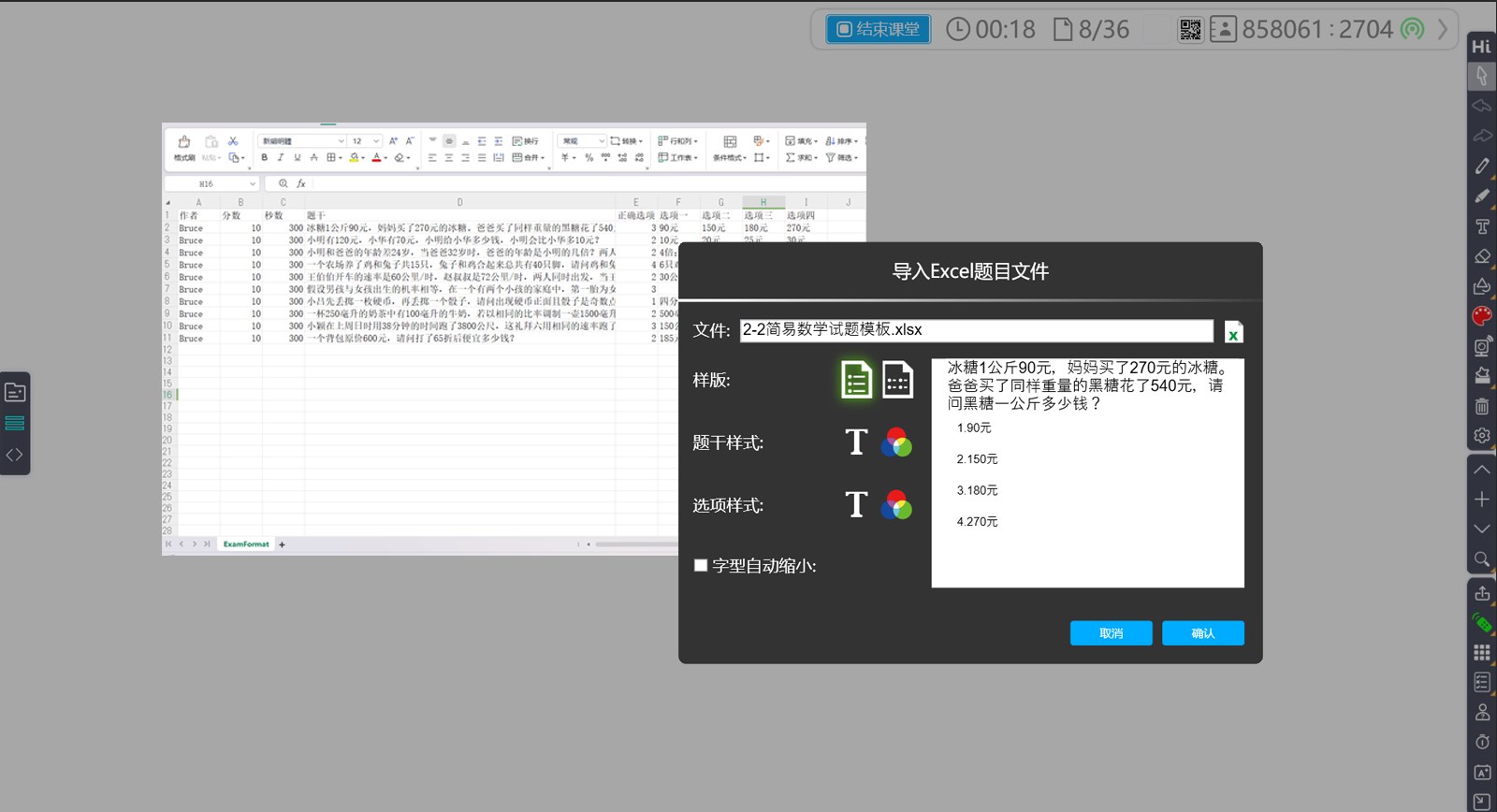 使用HiTeach的測(cè)驗(yàn)?zāi)J綍r(shí),Excel導(dǎo)入支持IES 5上所建立的試卷。